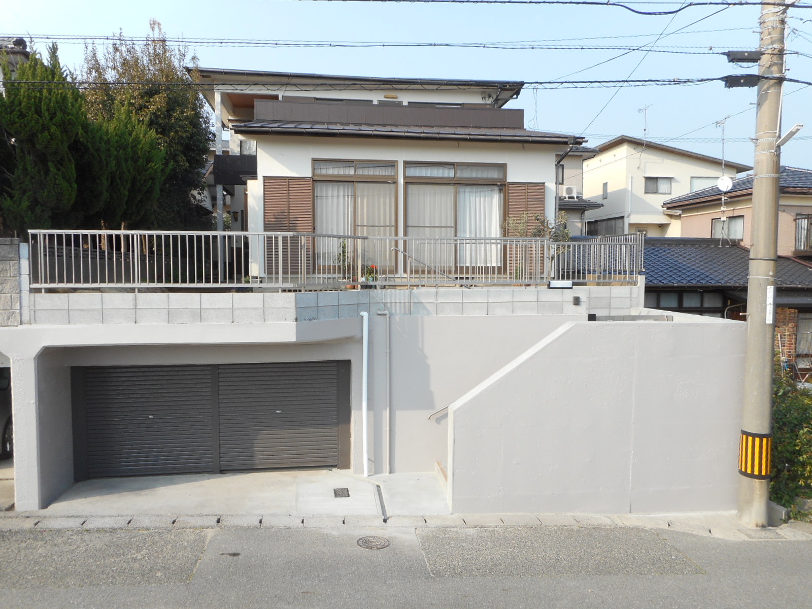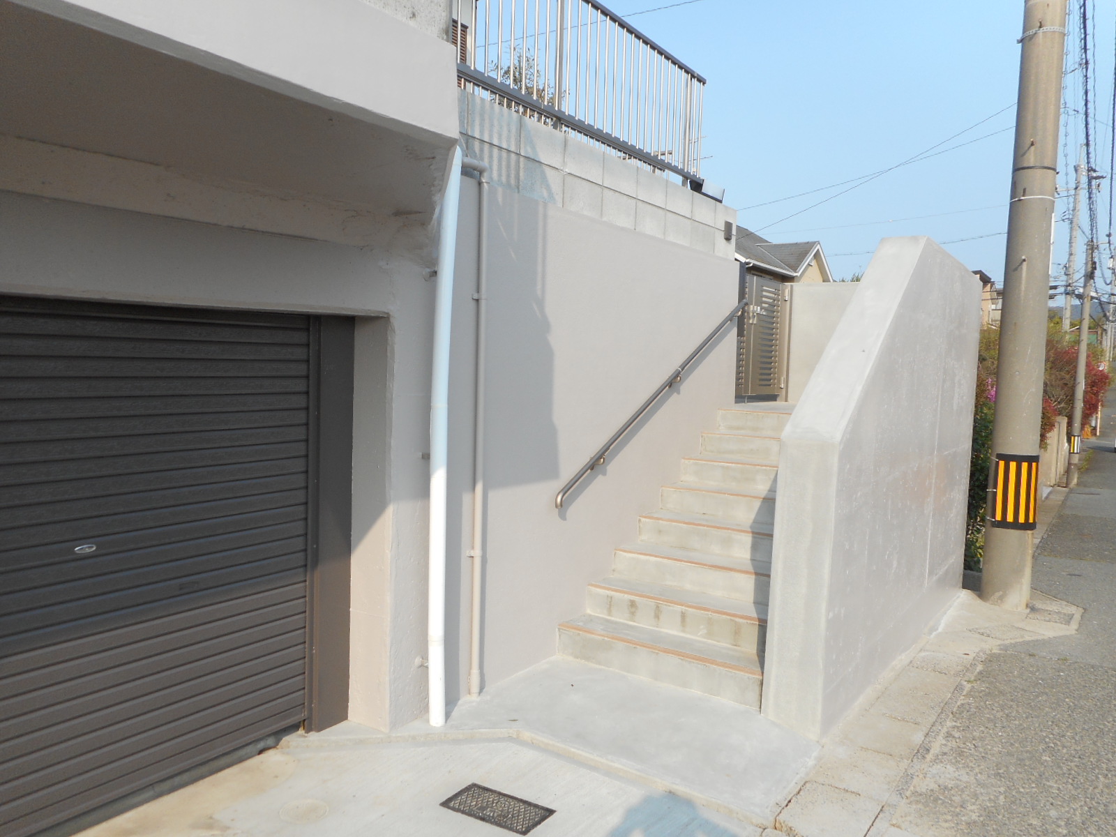 建物の壁廻りは全面塗装し、道路側の擁壁とシャッターも塗装し、その他はこれまで紹介した様な改修工事を行いました。