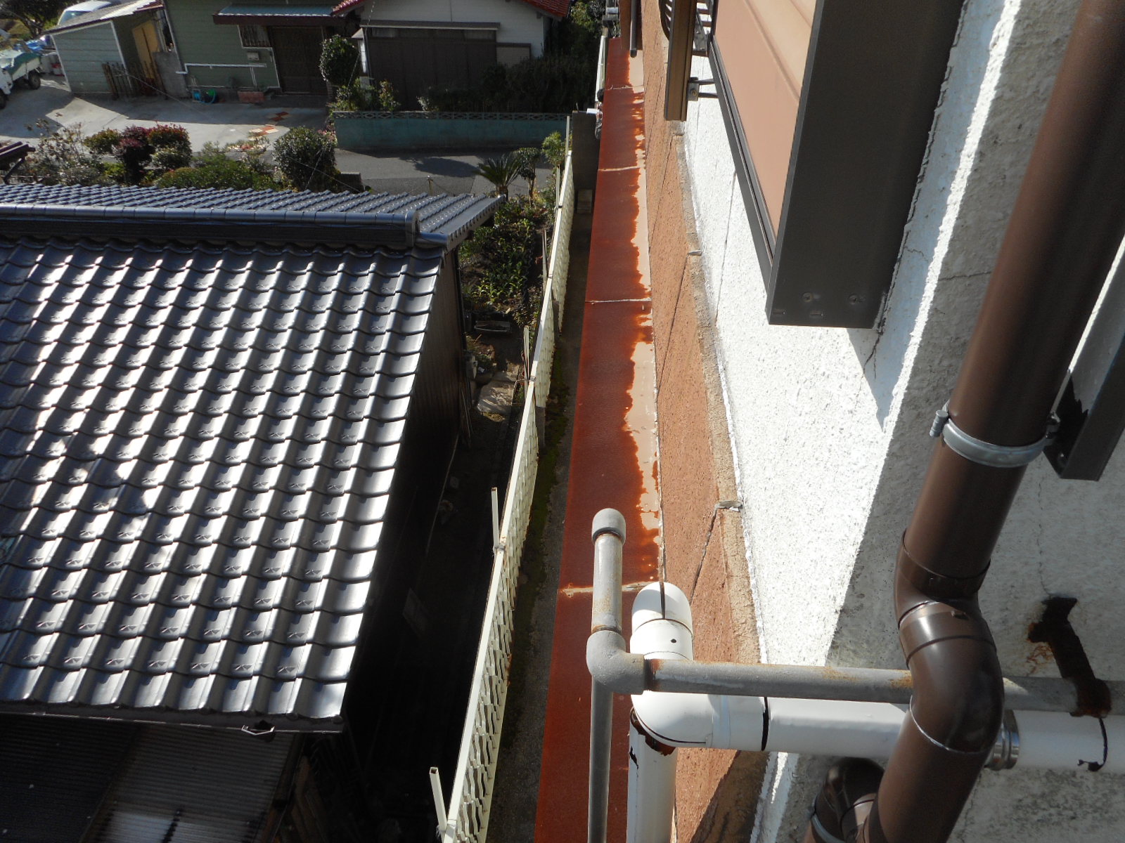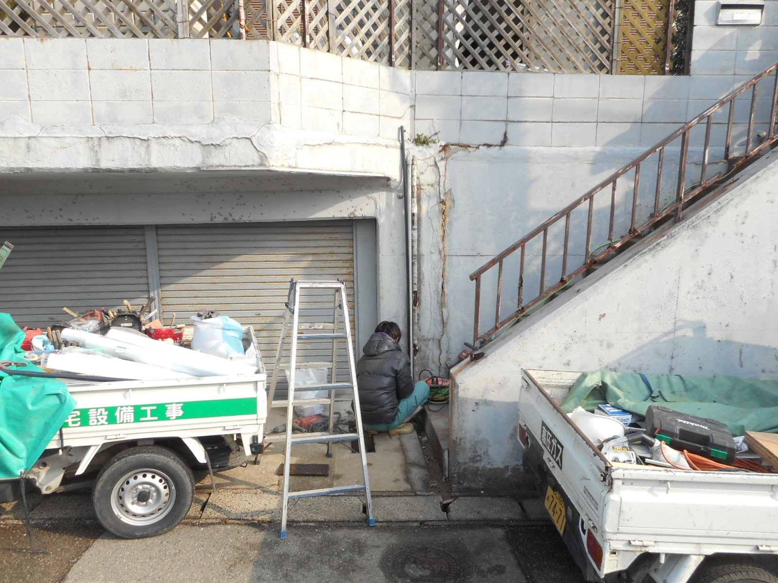 | 下のこの部分は状態が悪いので、引替えます!! | 上は、新規階段部分に既存のガス管があるためルートを変えて引替えます!! |