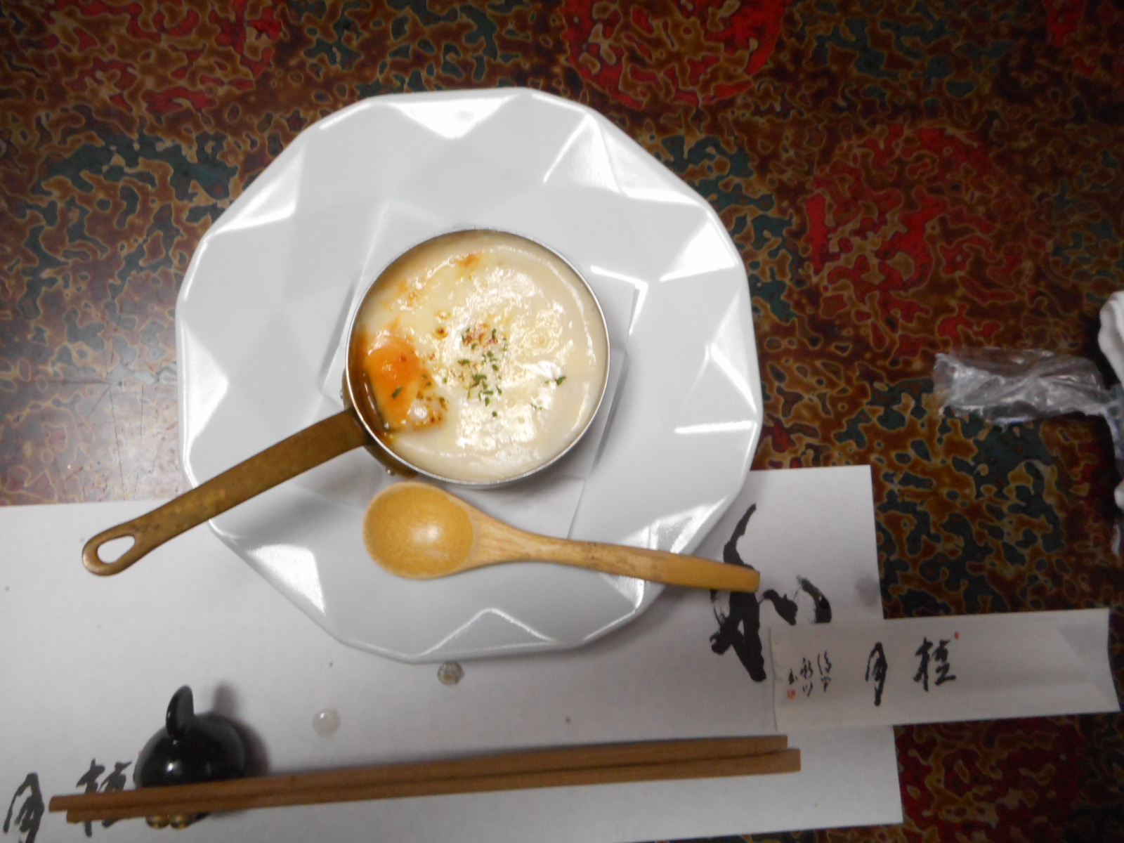 | 焼き物(ラザニア?)!! | 御飯(私は雲丹釜飯を注文しました)!! |
