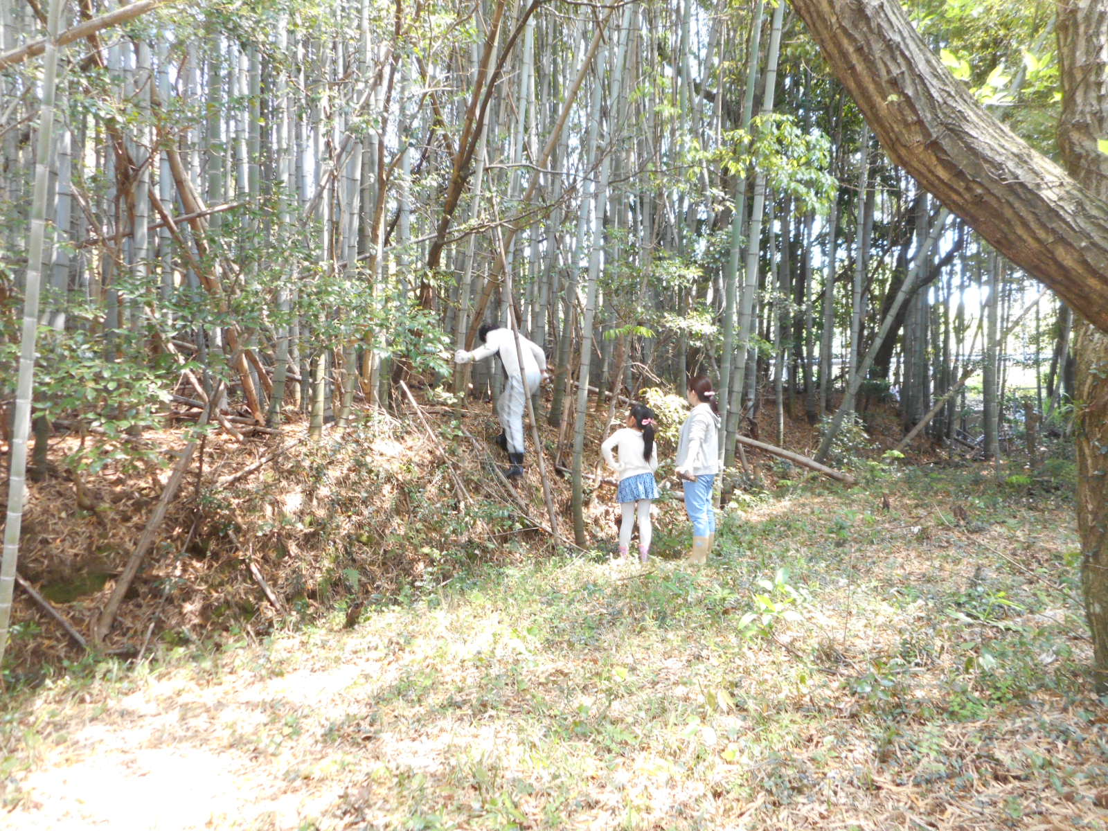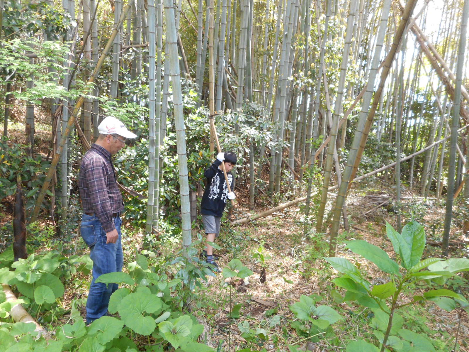 | 遅れを挽回しようと、乃明くんが竹の子を獲り始めました!! | 明ちゃんファミリーは、竹の子を探しにさらに奥へと行く様です!! |