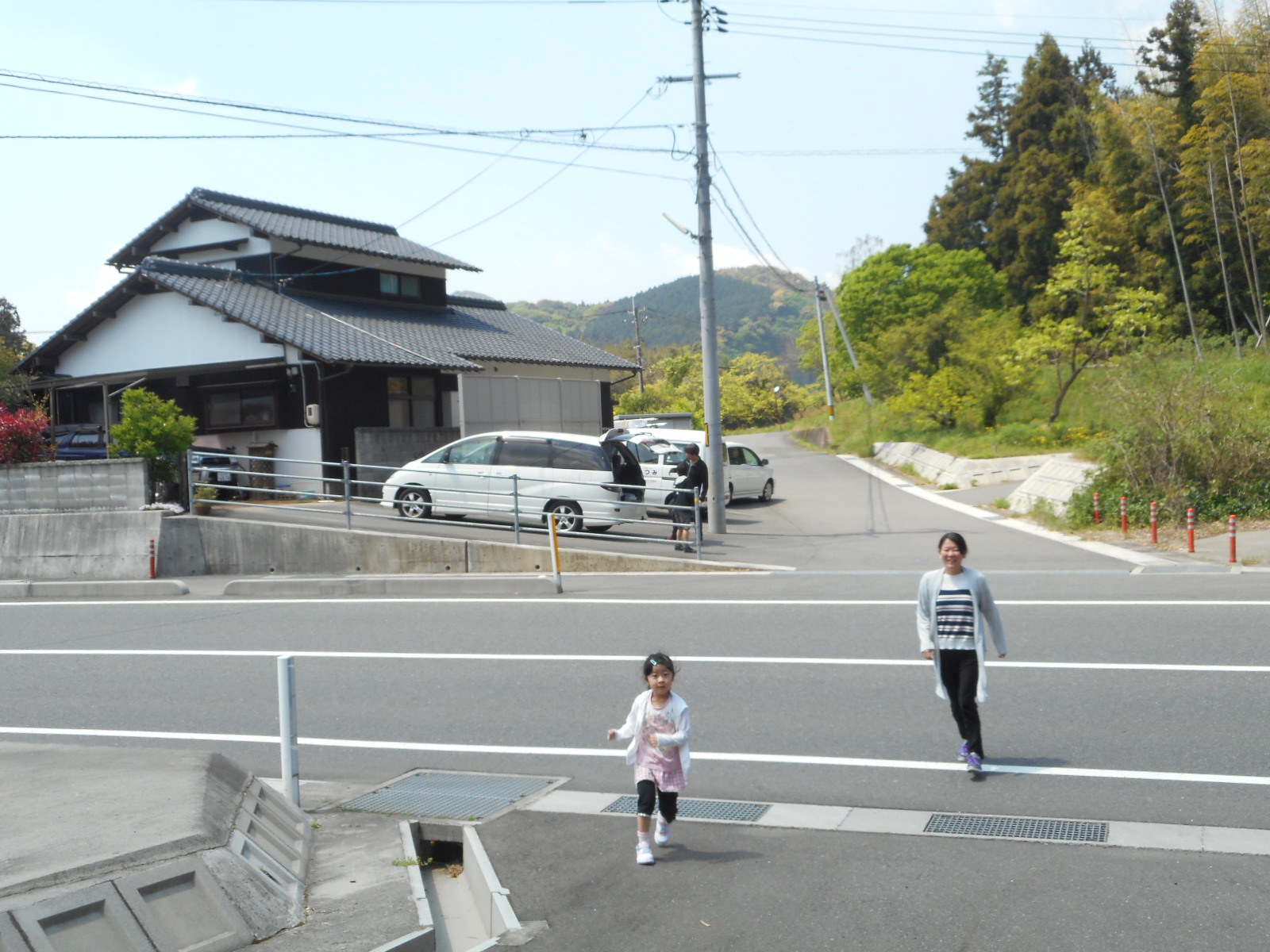 遅れて来た、香ちゃんファミリーが妹の家に到着です(香ちゃんが走って道路を渡って来ました)!!