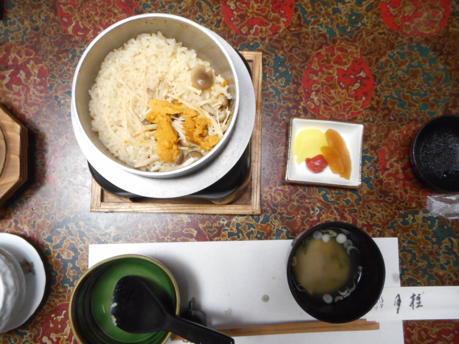 雲丹釜飯も、お腹一杯で食べられなかったので持って帰りました。