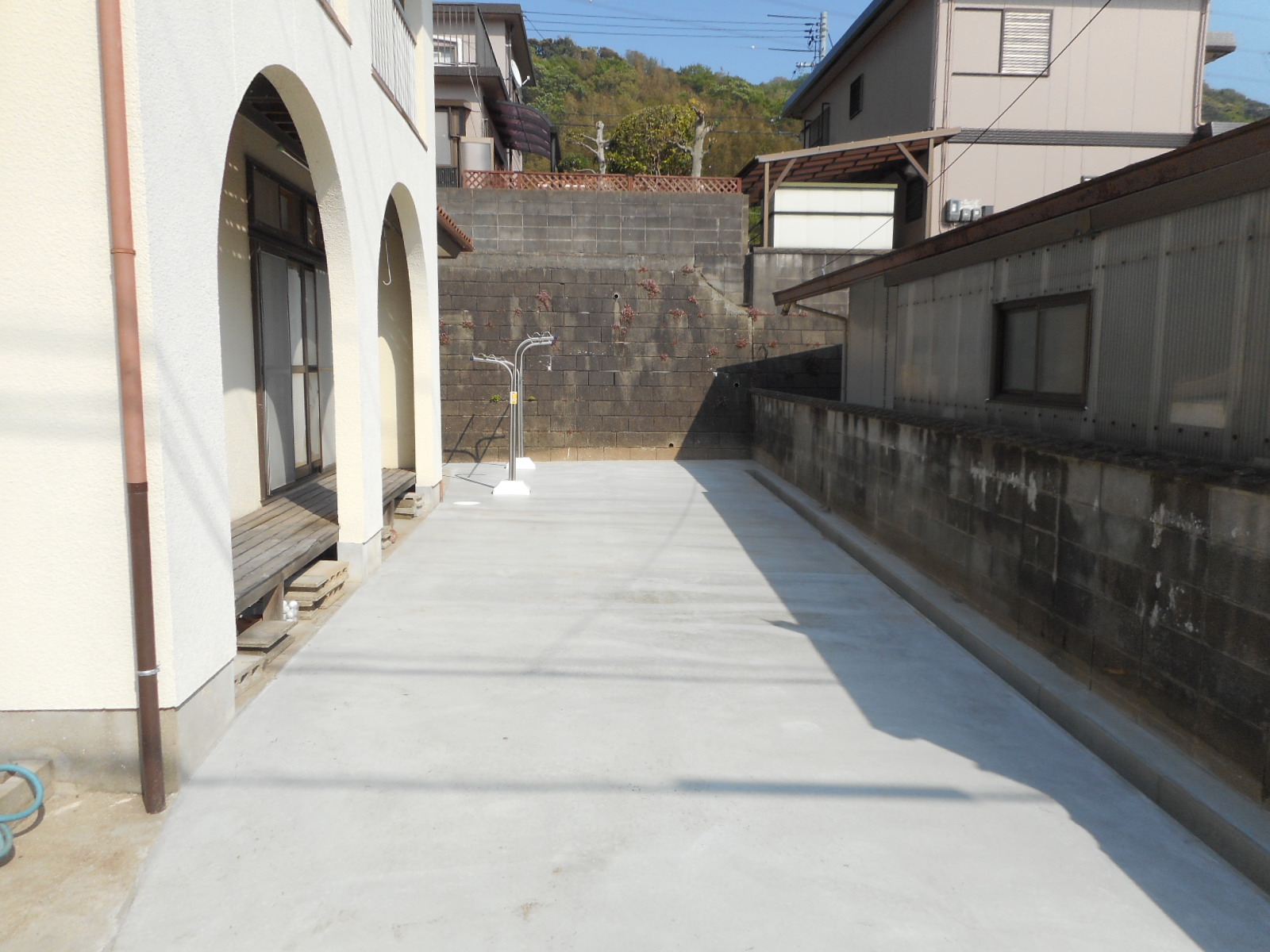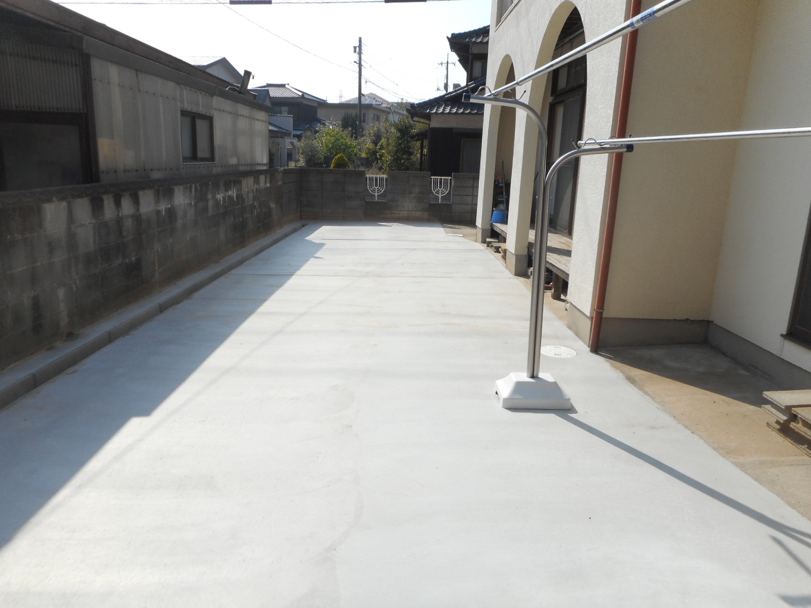 約60平方メートルあるこちらの庭に、これからの季節草が生い茂るので、その手入れが大変と言うととで全面コンクリートを打つことにしました。