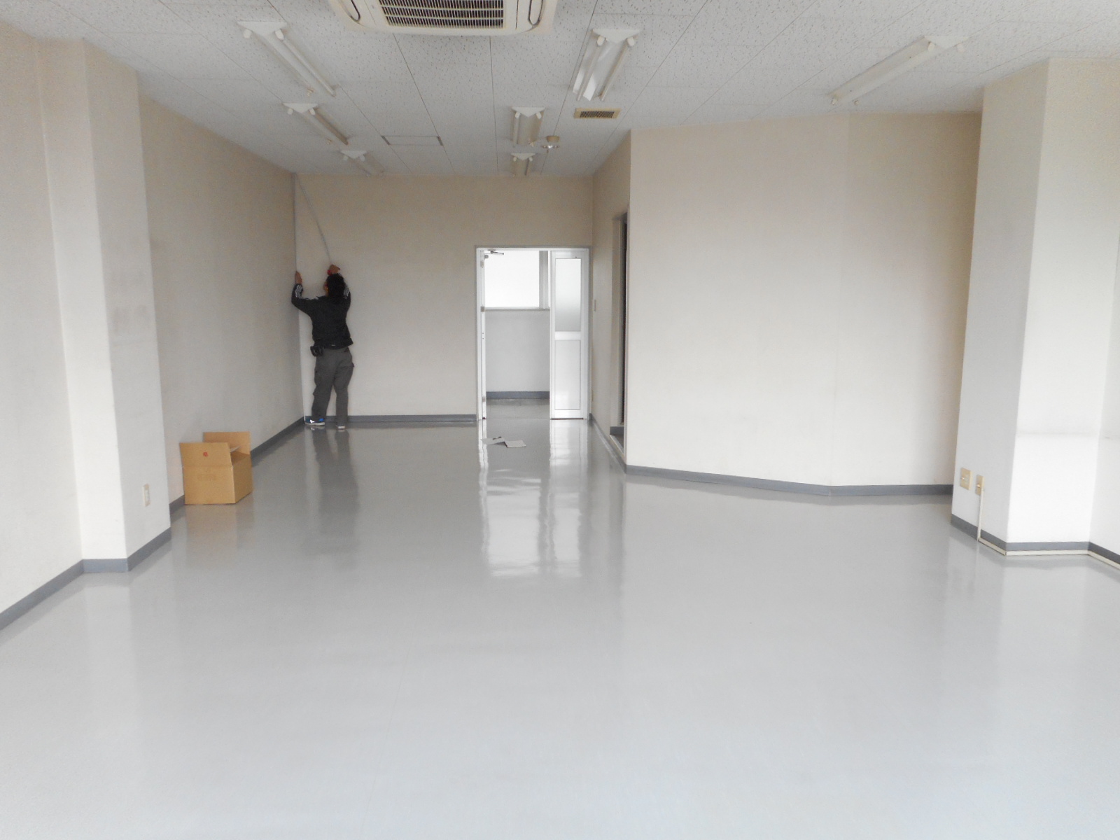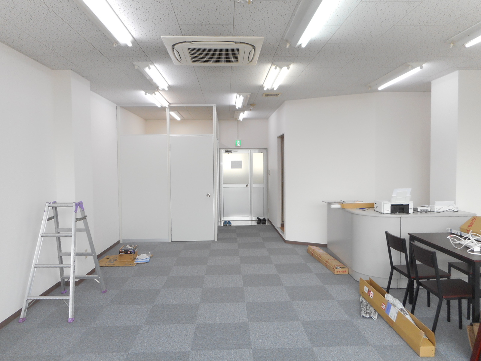 壁廻りのクロス張替えと床には新規にタイルカーペットを施工します。