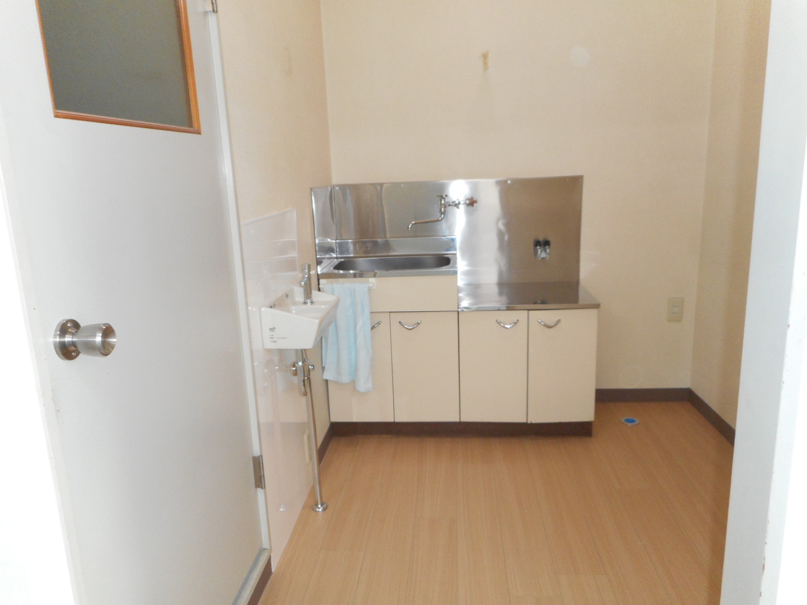 | 下地整備と内装工事が、完了しました!! | 流し台を元に戻し、コンパクト手洗い器を取付け、完成となります!! |