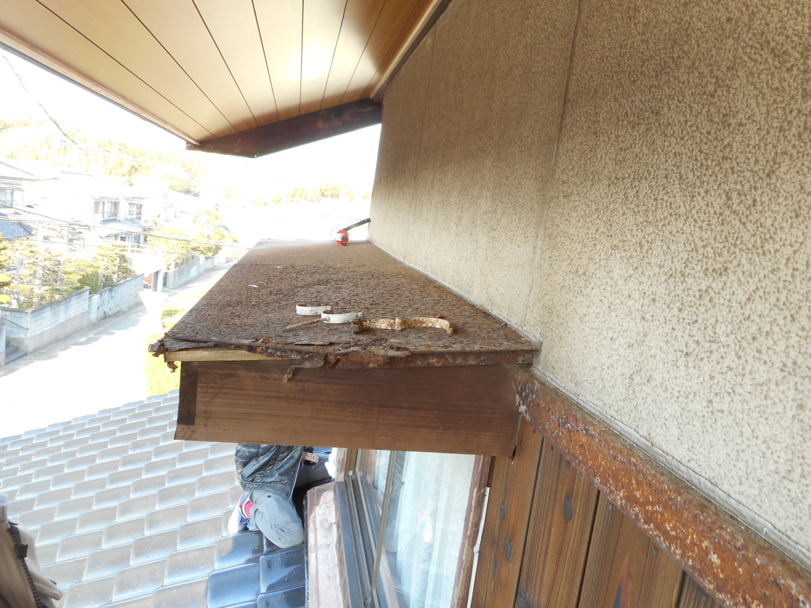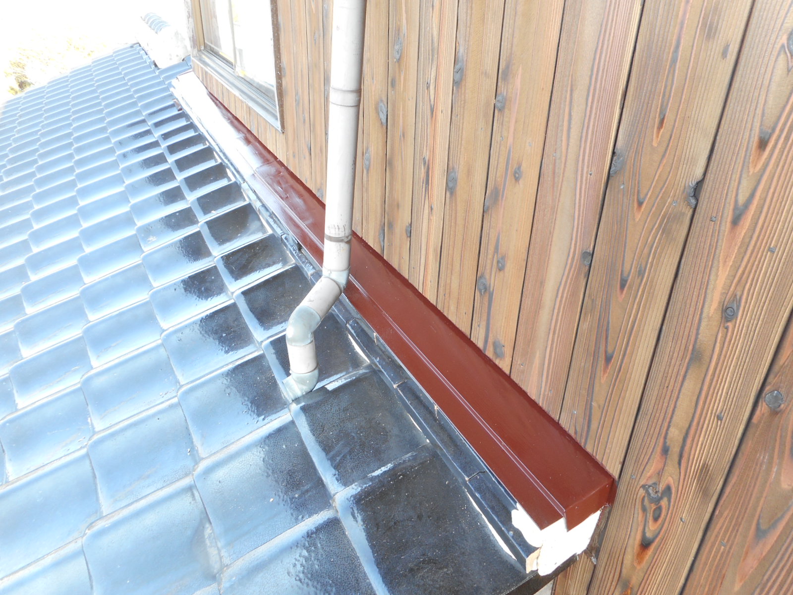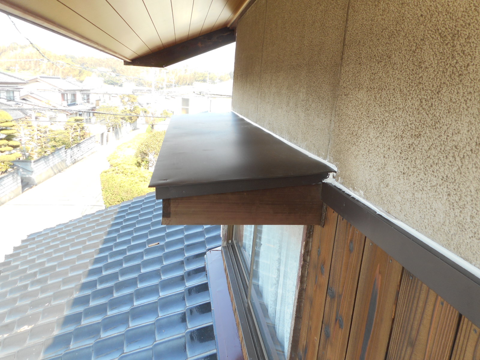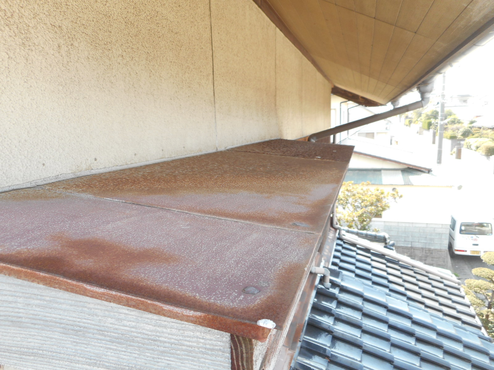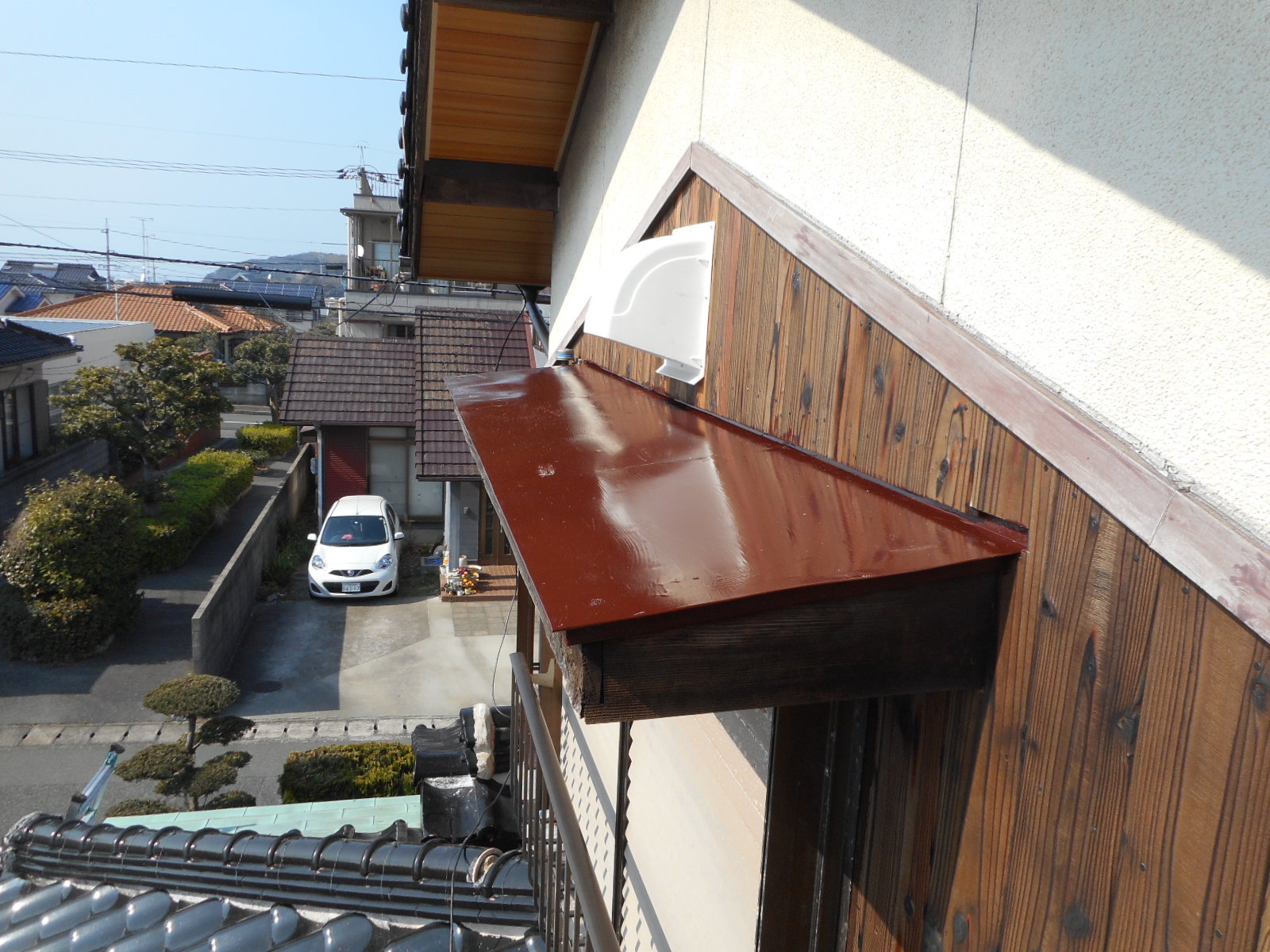③、2階の庇&水切りの補修‥庇の悪い箇所は張替え、比較的状態の良い箇所は塗装をし、水切りも塗装します。