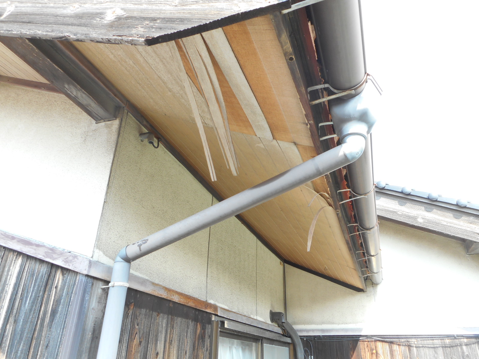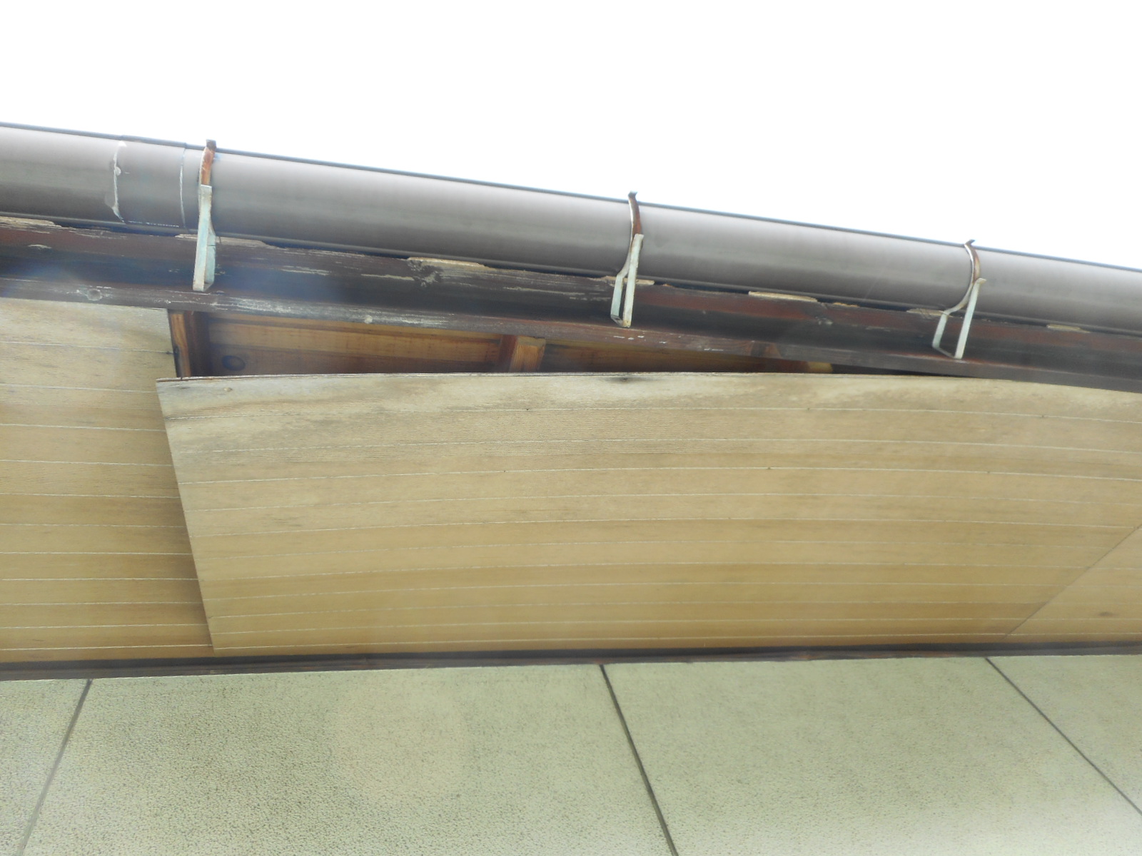 | 軒天が、剥がれ落ちそうです!! | こちらの軒天も、状態が良く有りません!! |