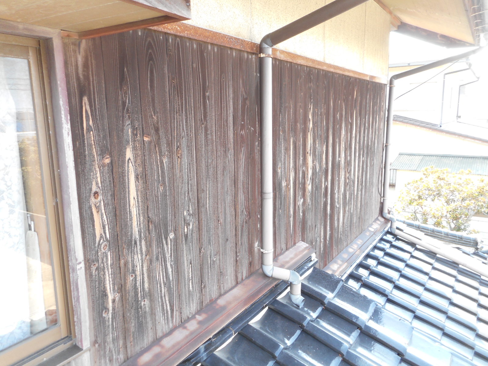 この様に、2階の4面の外壁(焼き杉)の張替えが完了しました。