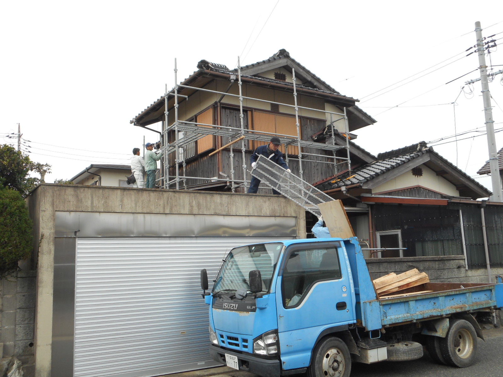| 東側も解体後、シートを張りました!! | つづいて、新規の外壁を張ります!! |