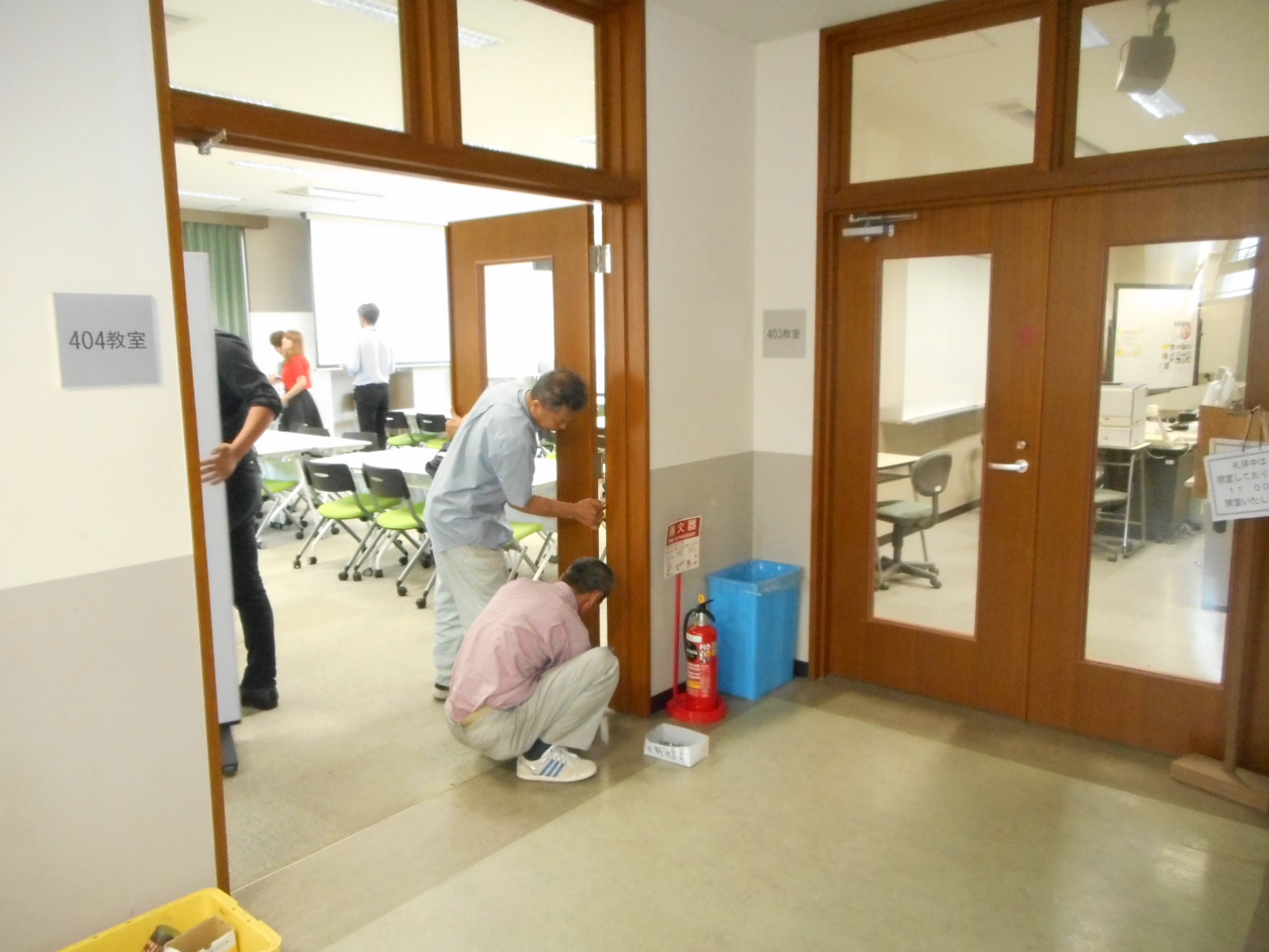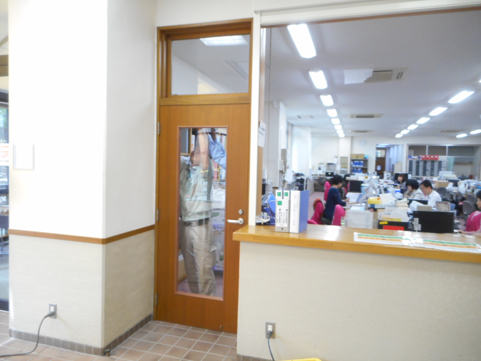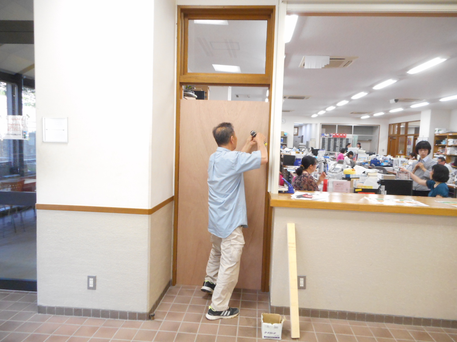 ◎最初に、事務室入り口ドアの改修工事の様子を紹介します。