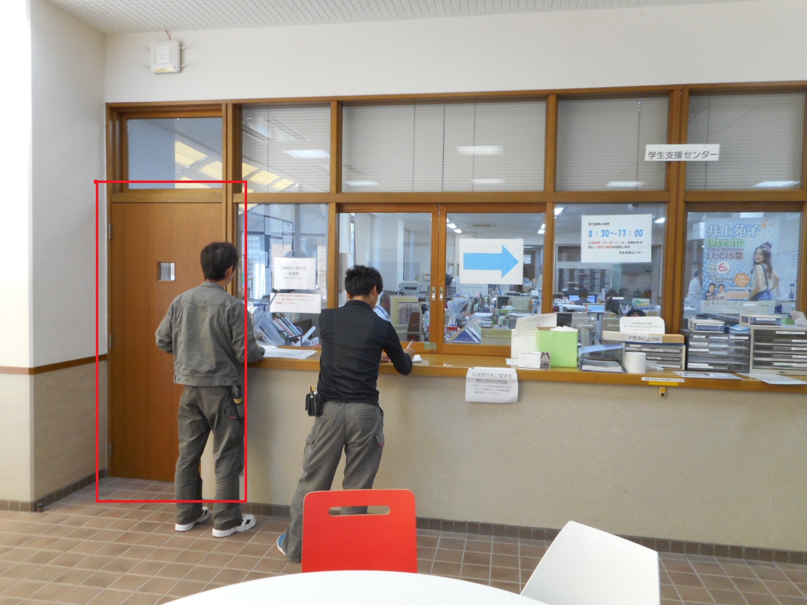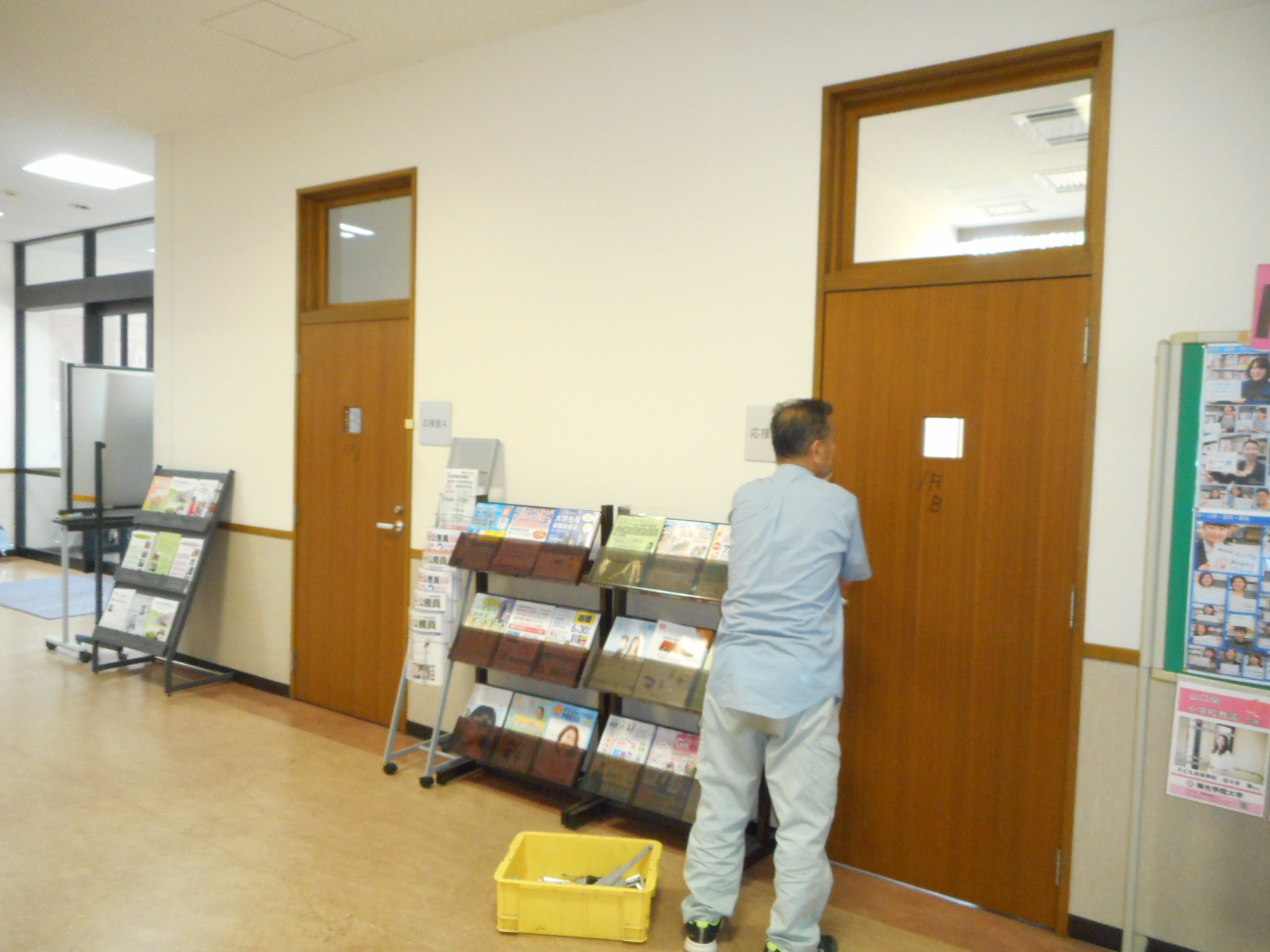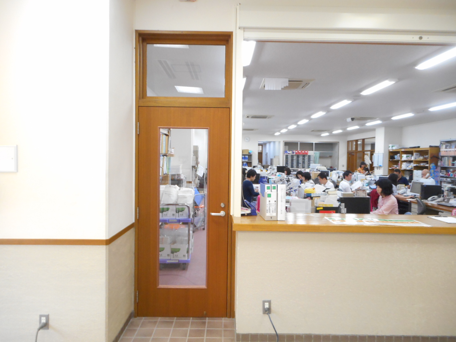 ◎最初に、事務室入り口ドアの改修工事の様子を紹介します。