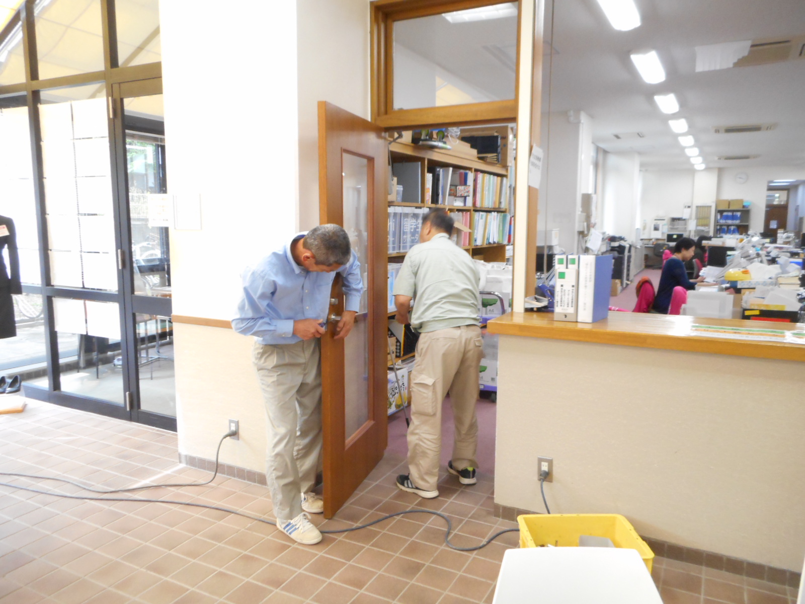 事務作業や出入りに支障が無い様に作業をしています。