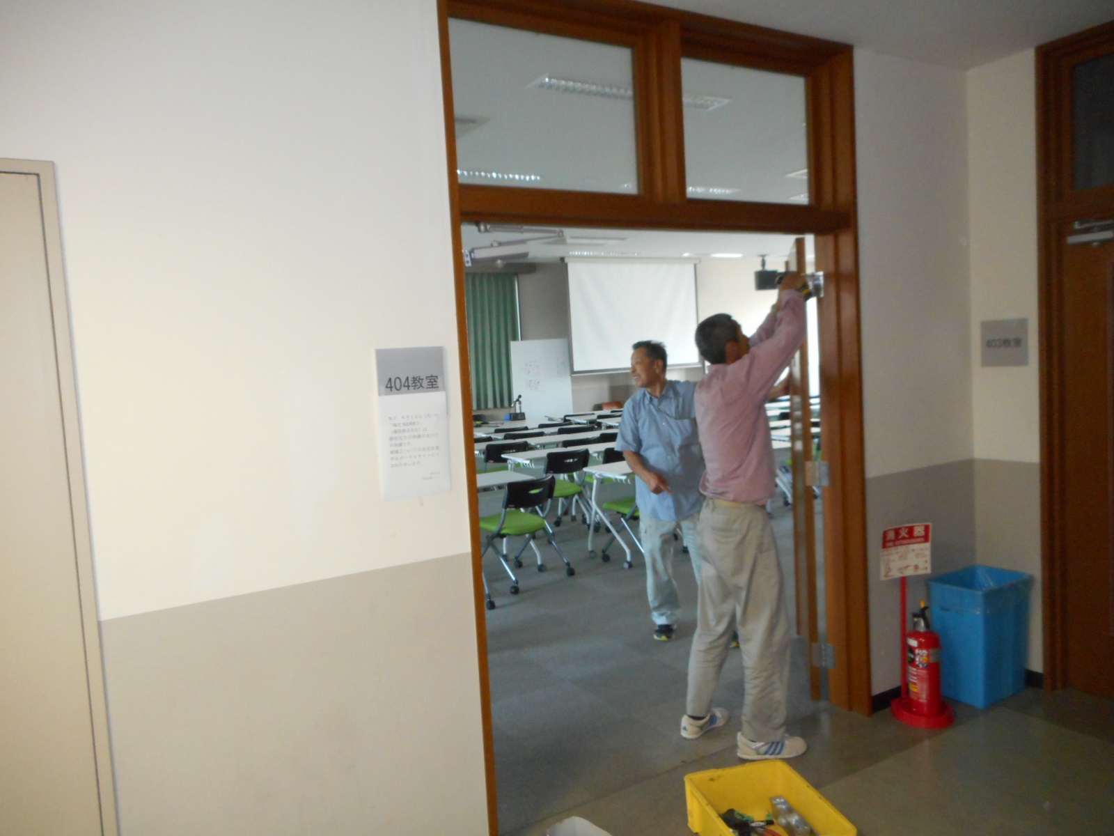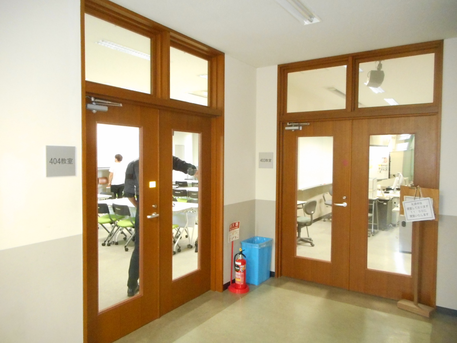 完了です!!(右のドアも同様に改修しました<廊下から教室の中が良く見えます>)