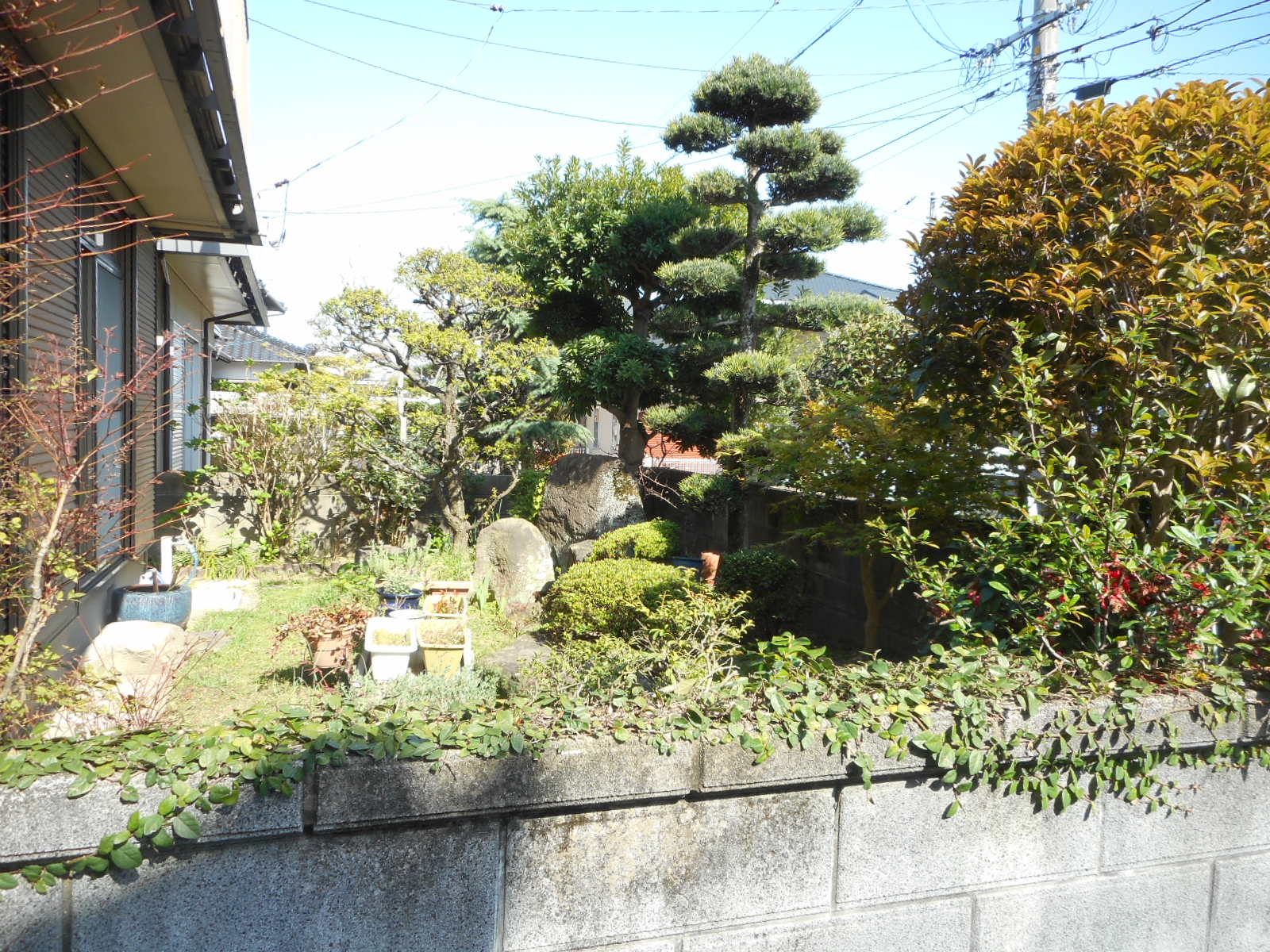 *ビフォー!!(庭木や大きな庭石が、沢山あります)