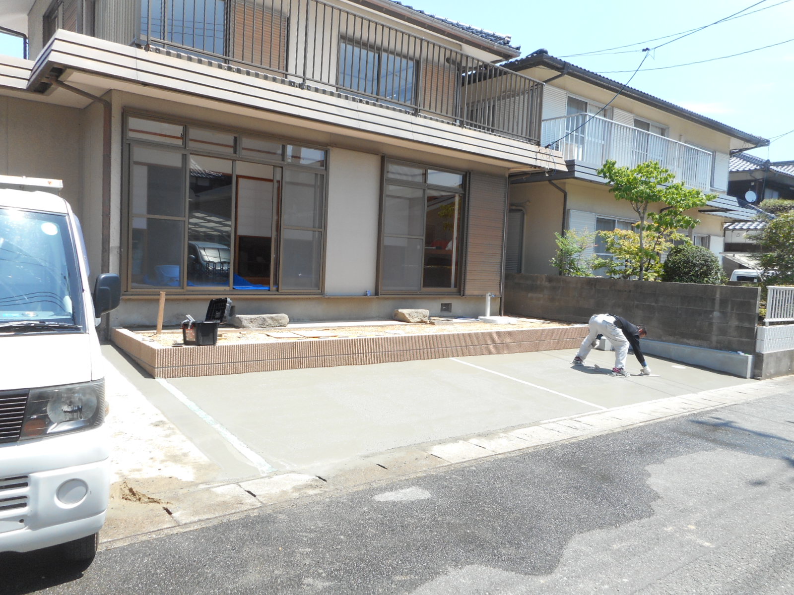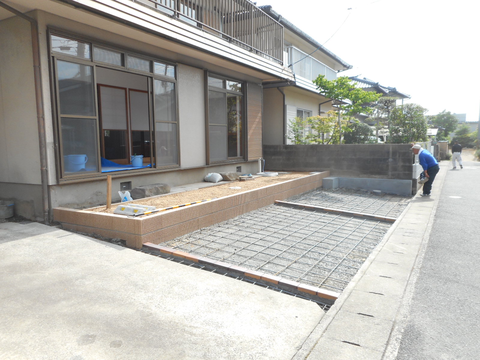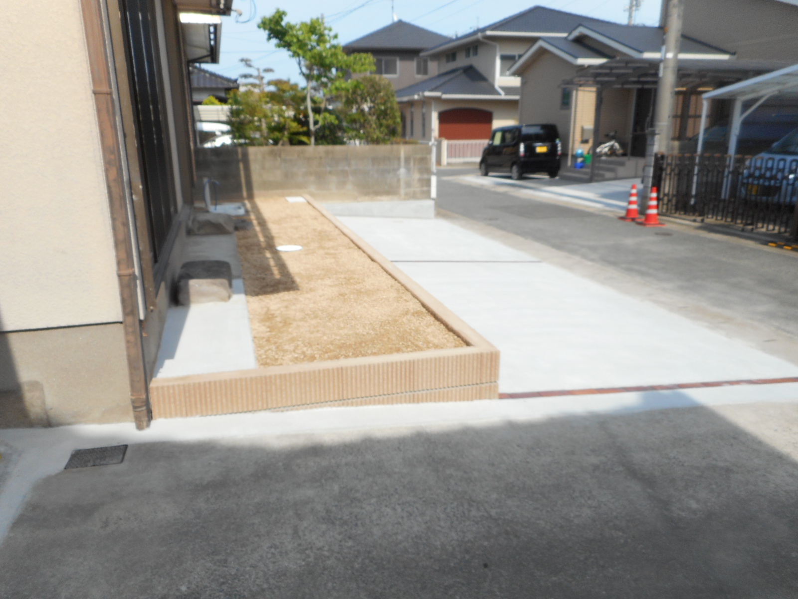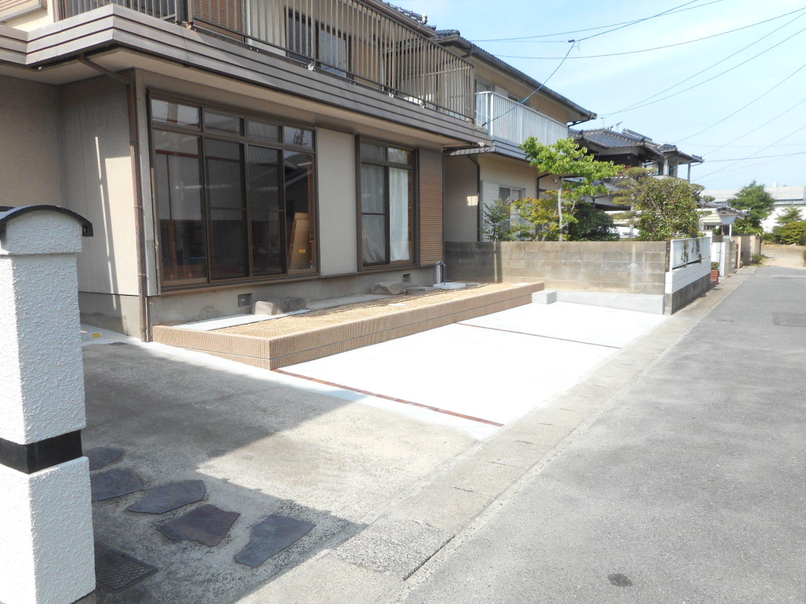 道路側のブロック塀と、お庭の中の庭木や庭石をすべて撤去し、道路から2,5mを駐車スペースとし
