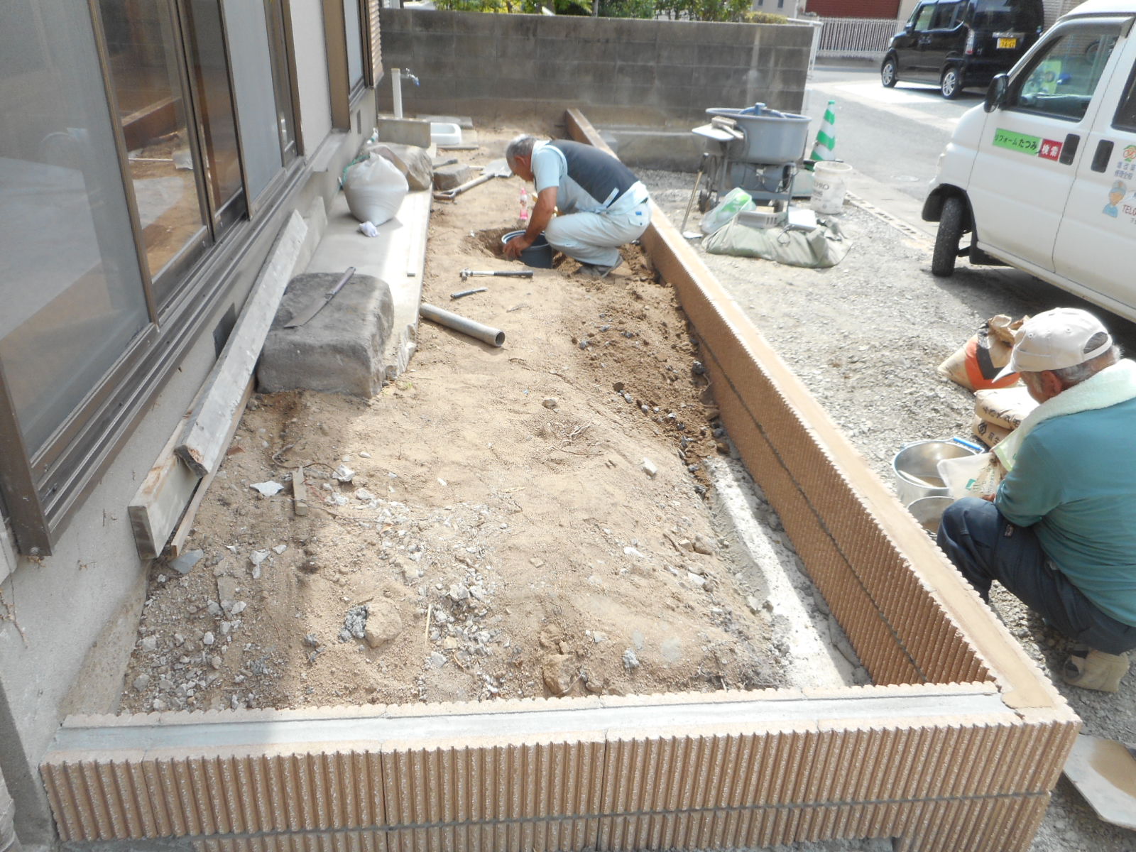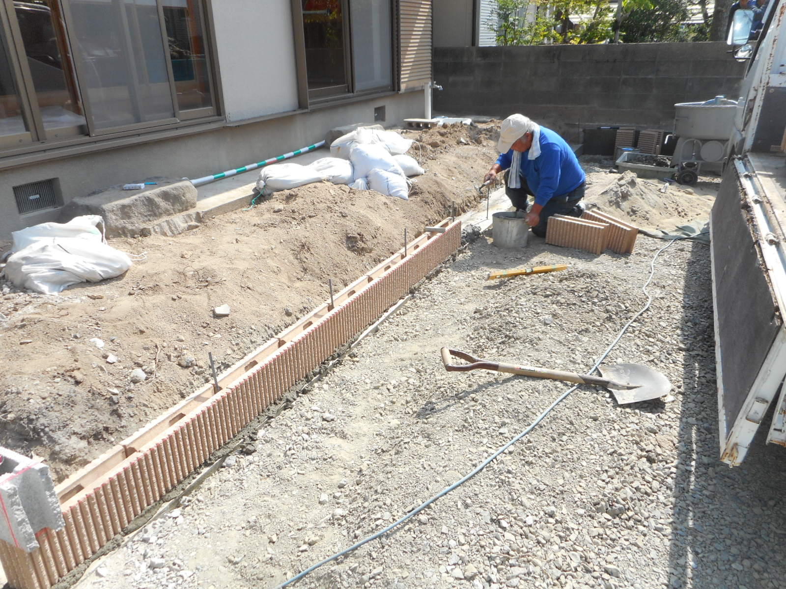 | 土留めのブロックの、基礎をしました!! | 土留めのブロックを、施工します!! |
