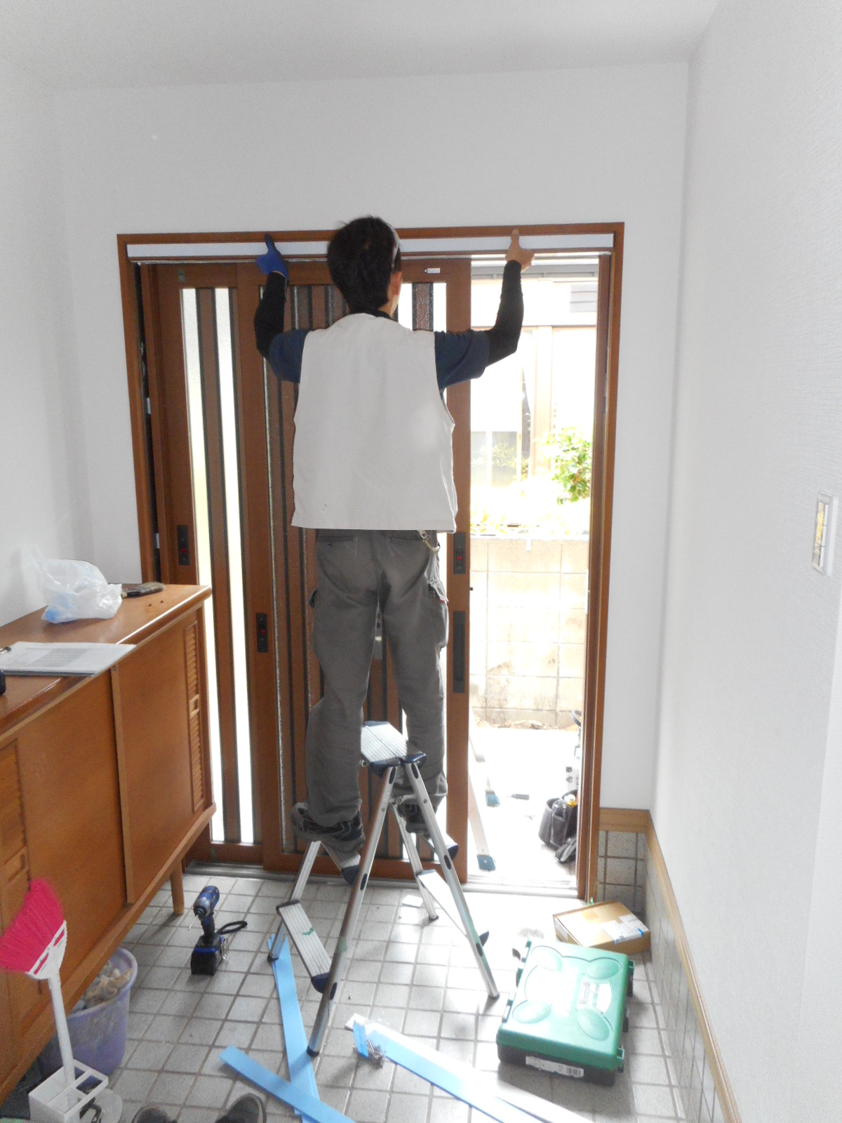 | 既存の戸を撤去し、既存の枠の上部より新規の引き戸を取付けました!! | 上部カバーを、取付けます!! |