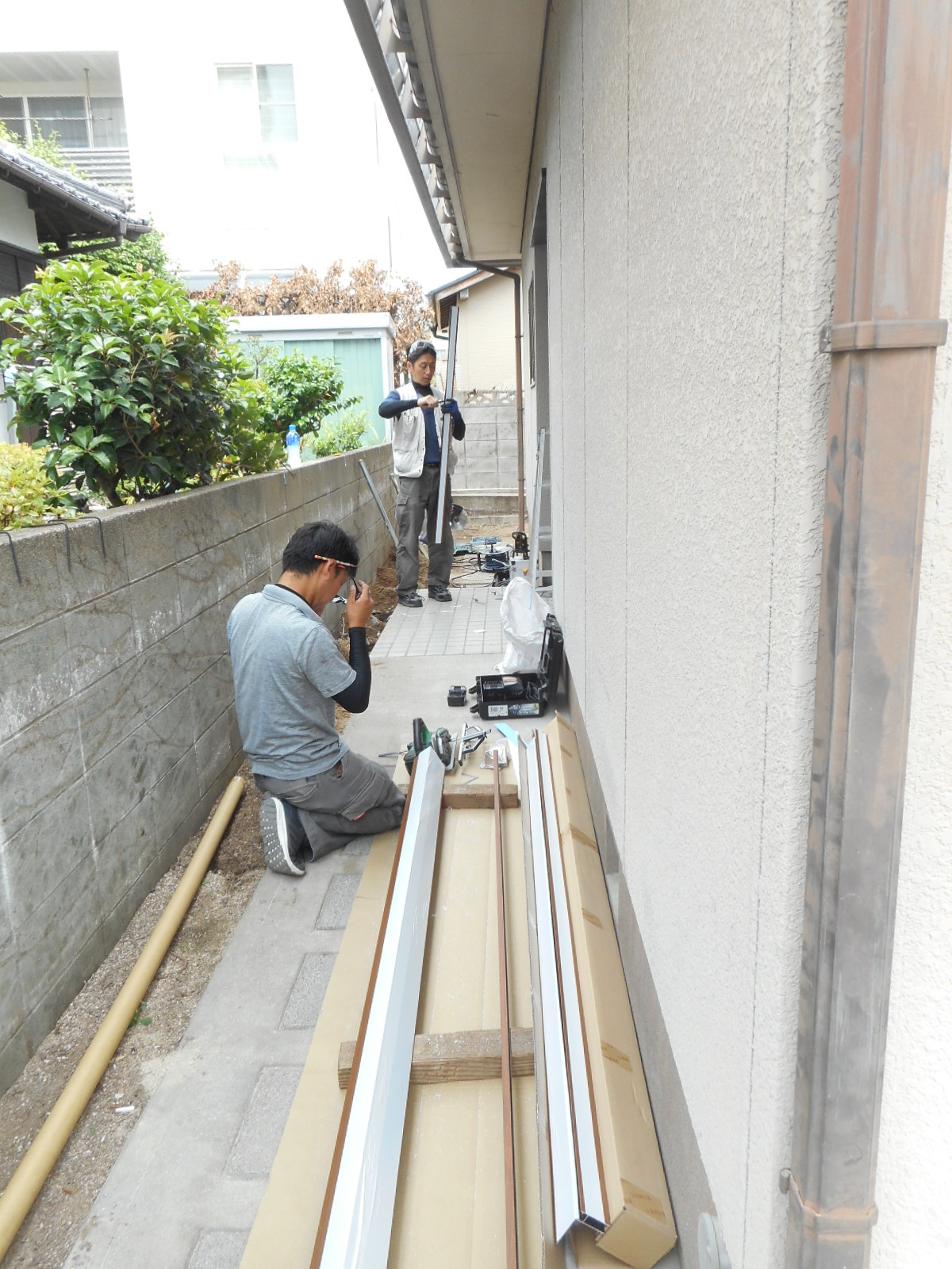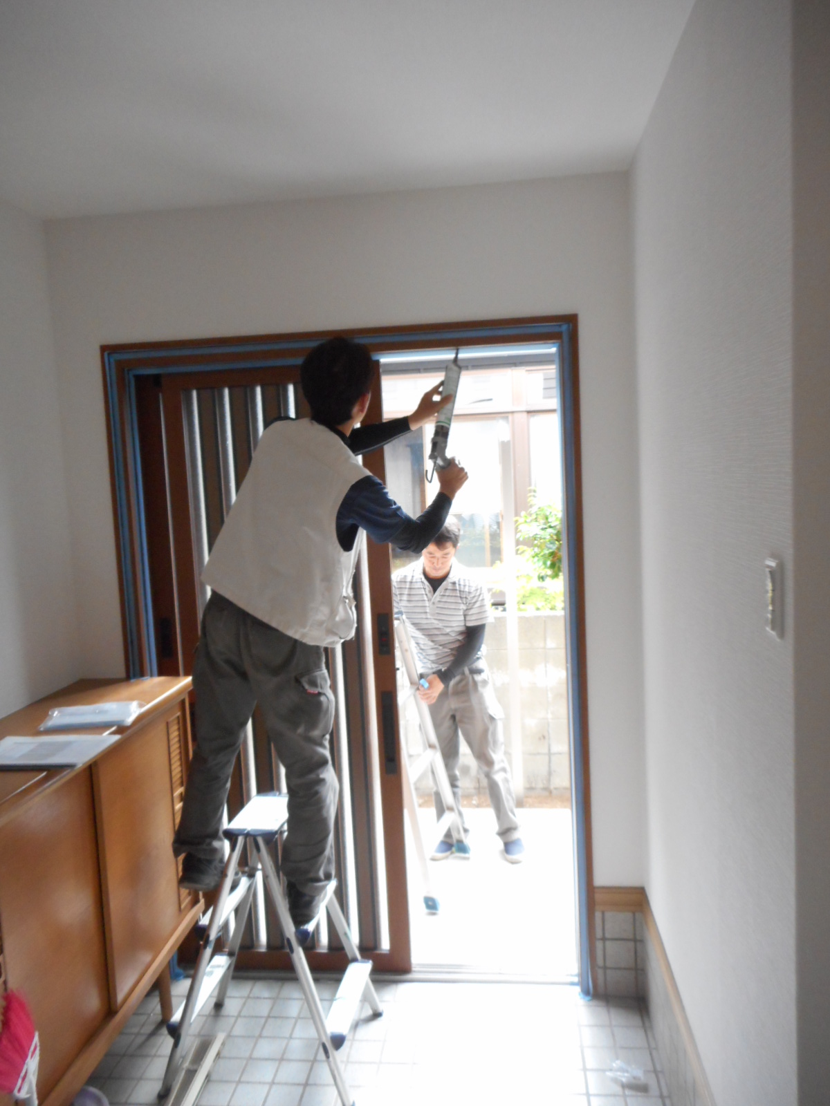 | 内側の上部にも、カバーを取付けます!! | 最後に、仕上げのコーキングを打ちます!! |