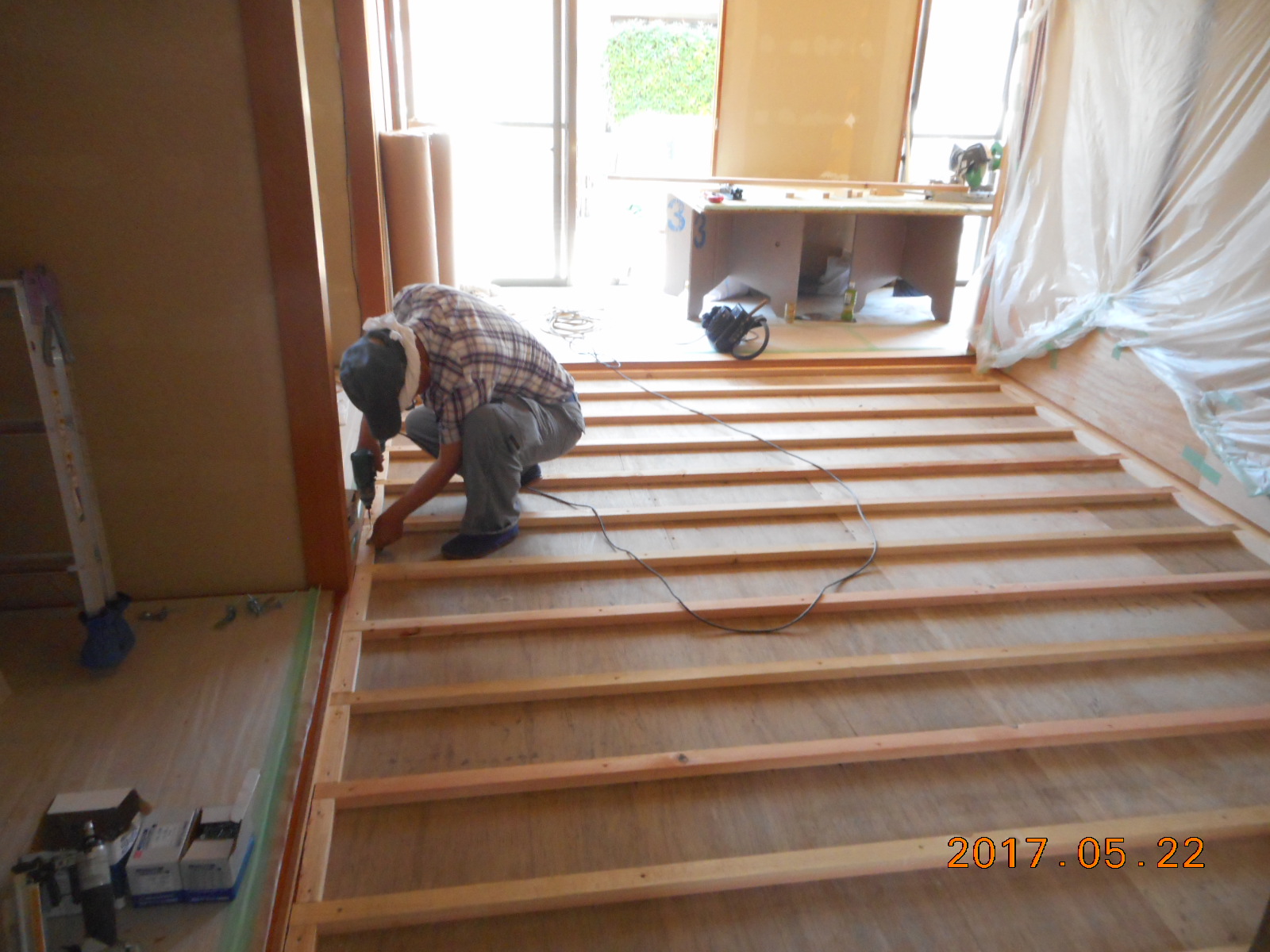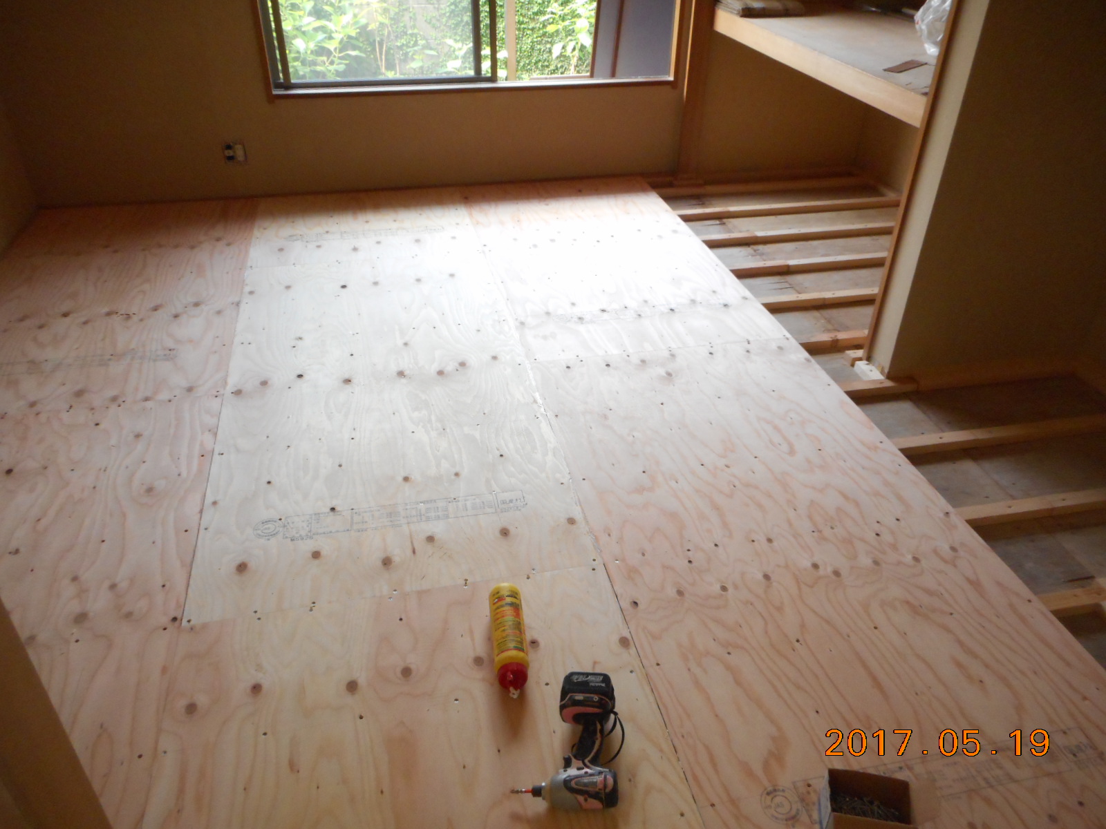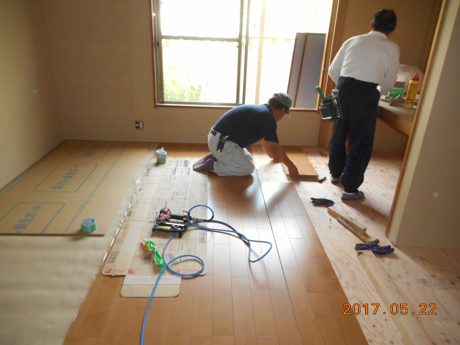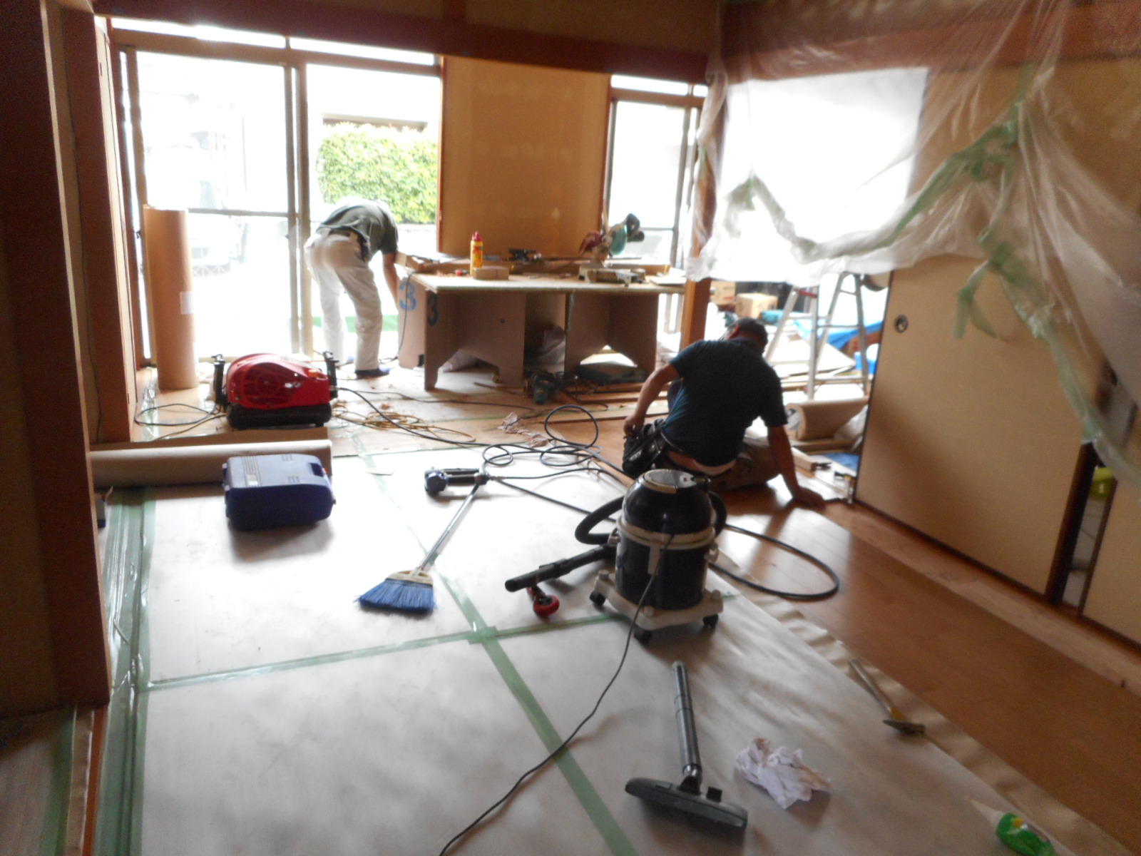 畳を撤去し下地整備後、捨て張りコンパネを施工します!! 新規フロア材を、施工します!!