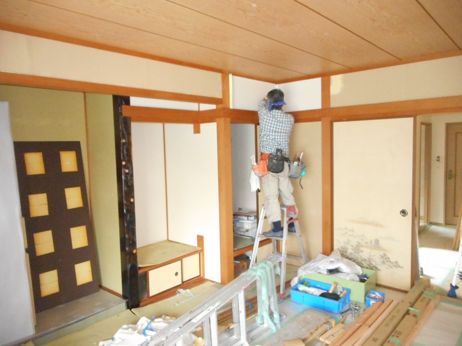 前回と前々回のブログで紹介した、市内某邸の改修工事の最終編として、今回は室内の改修工事の様子を紹介します。