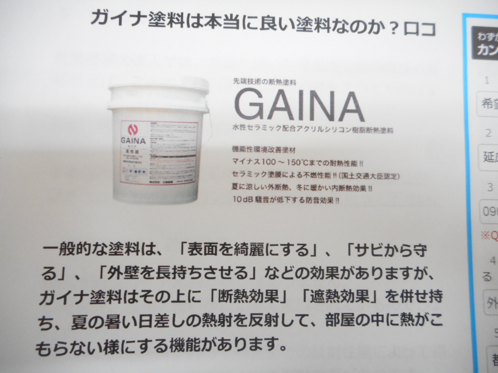 ぜひ一度、外廻りの塗装をお考えの方や、この夏の室内の暑さを少しでも和らげたいとお思いの方は、この「ガイナ塗装」ご検討下さい。