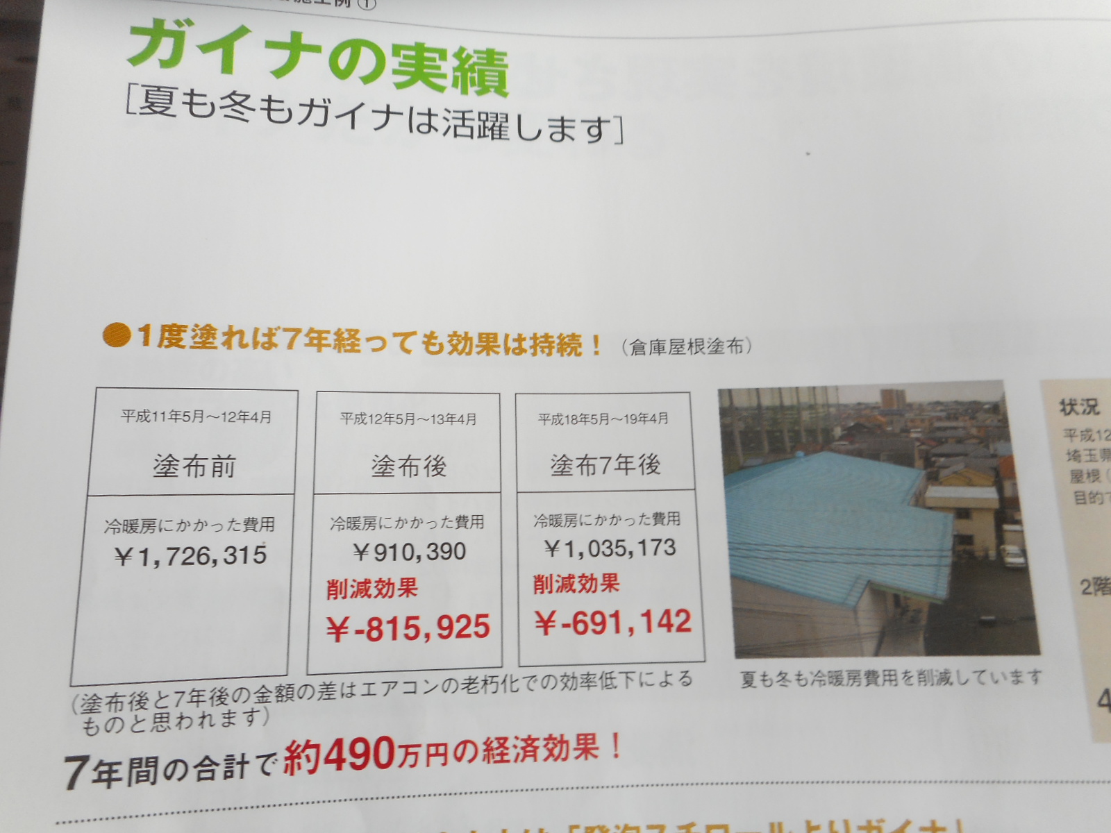 ◎これは埼玉県の倉庫の折板屋根(1,300㎡)に「ガイナ塗装」をしたデーターです。