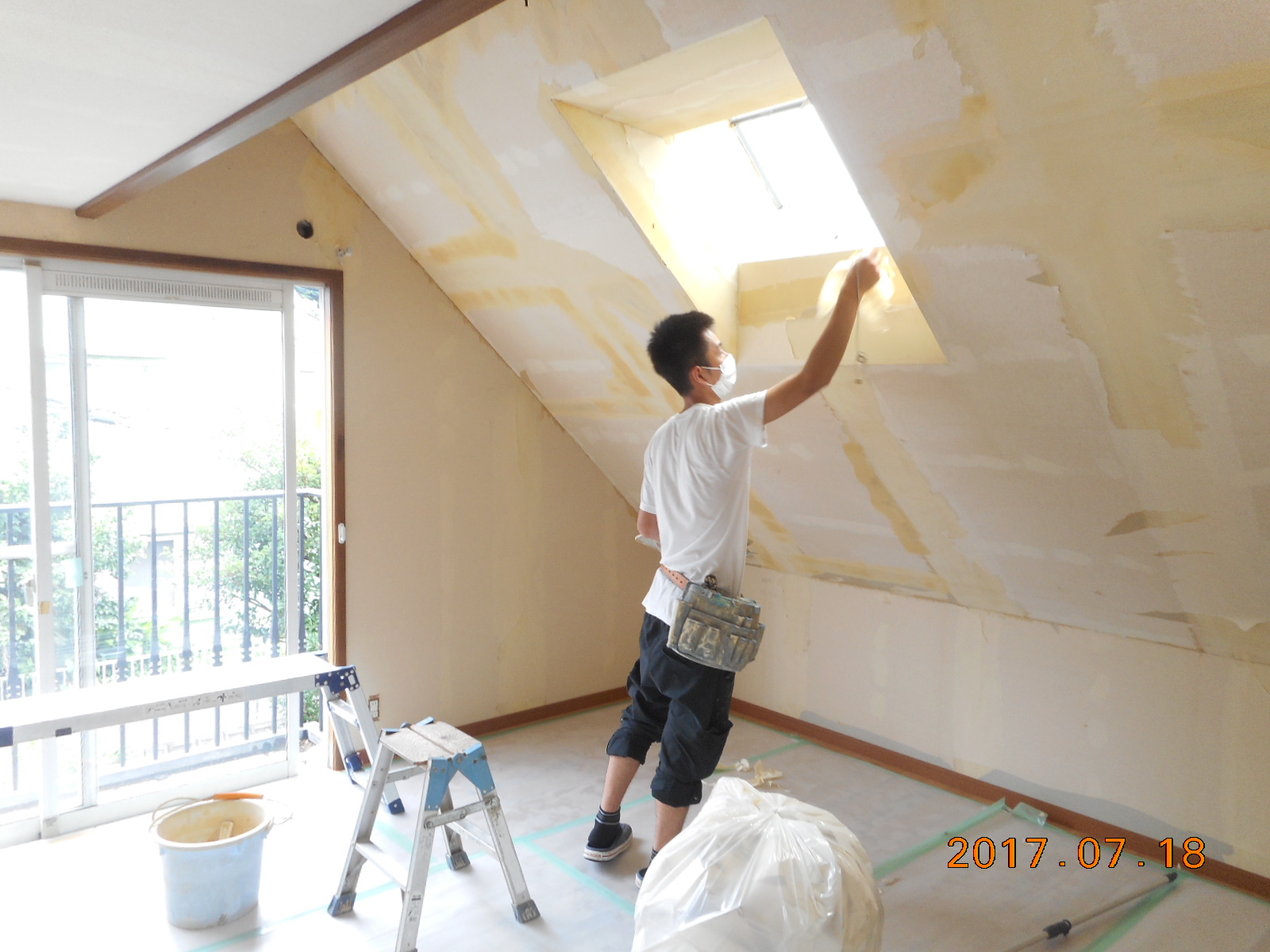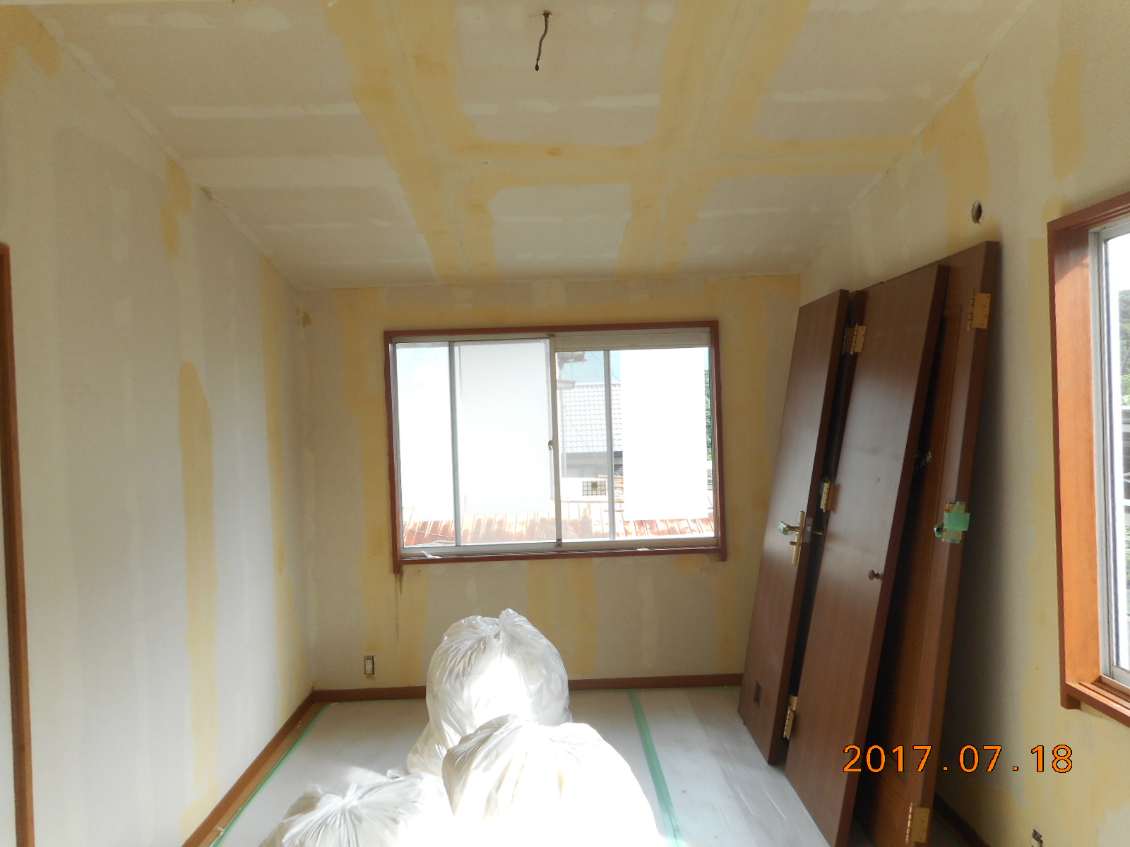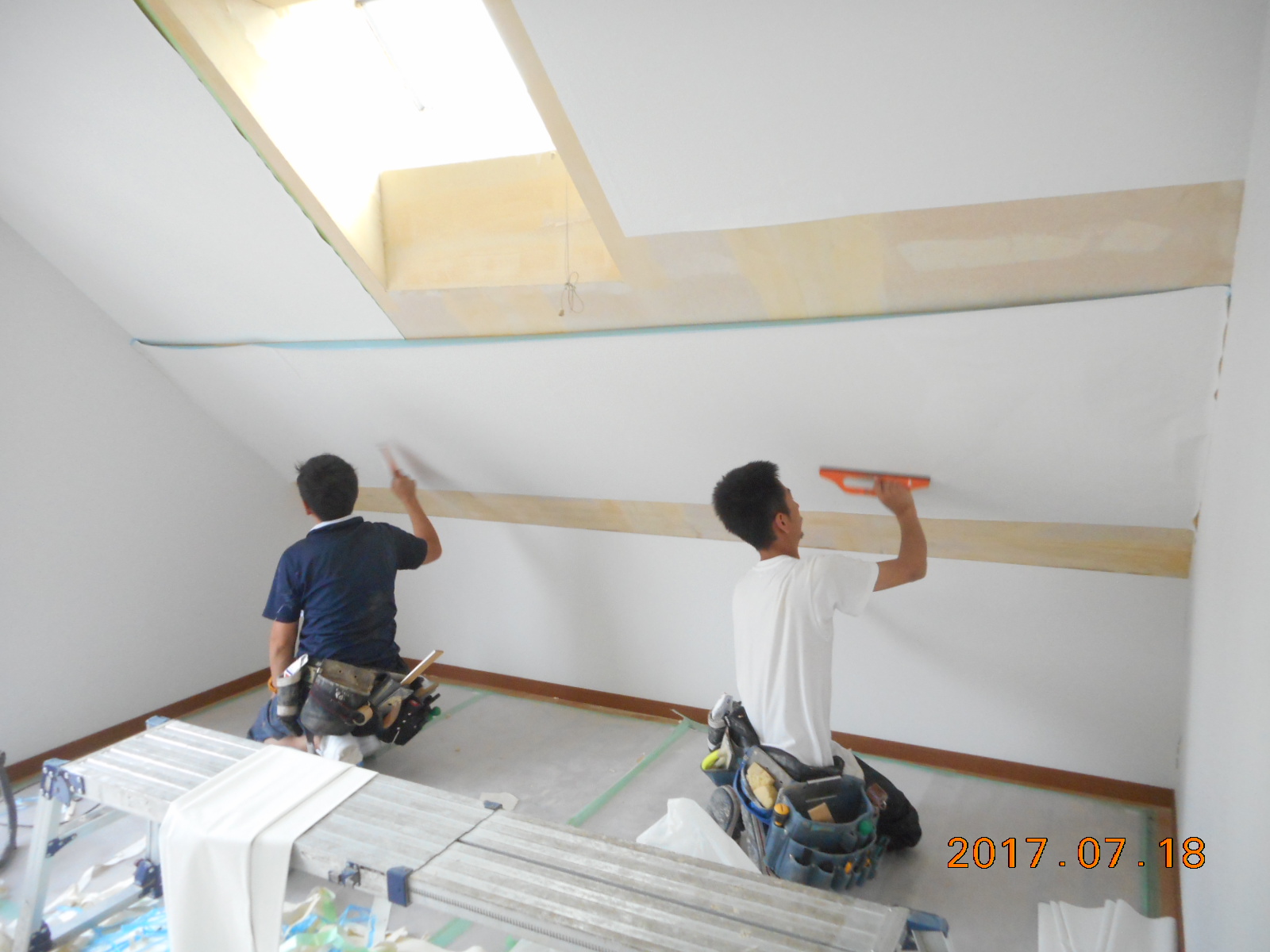 2階は大工さんの工事がほぼ終わったので、7/18から内装工事へと進みました。