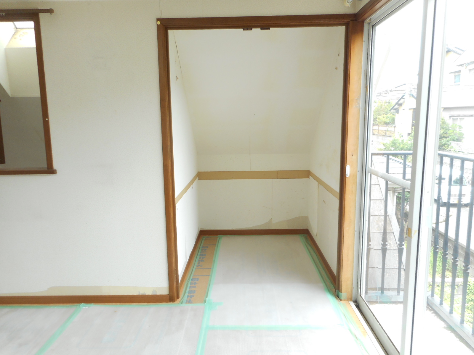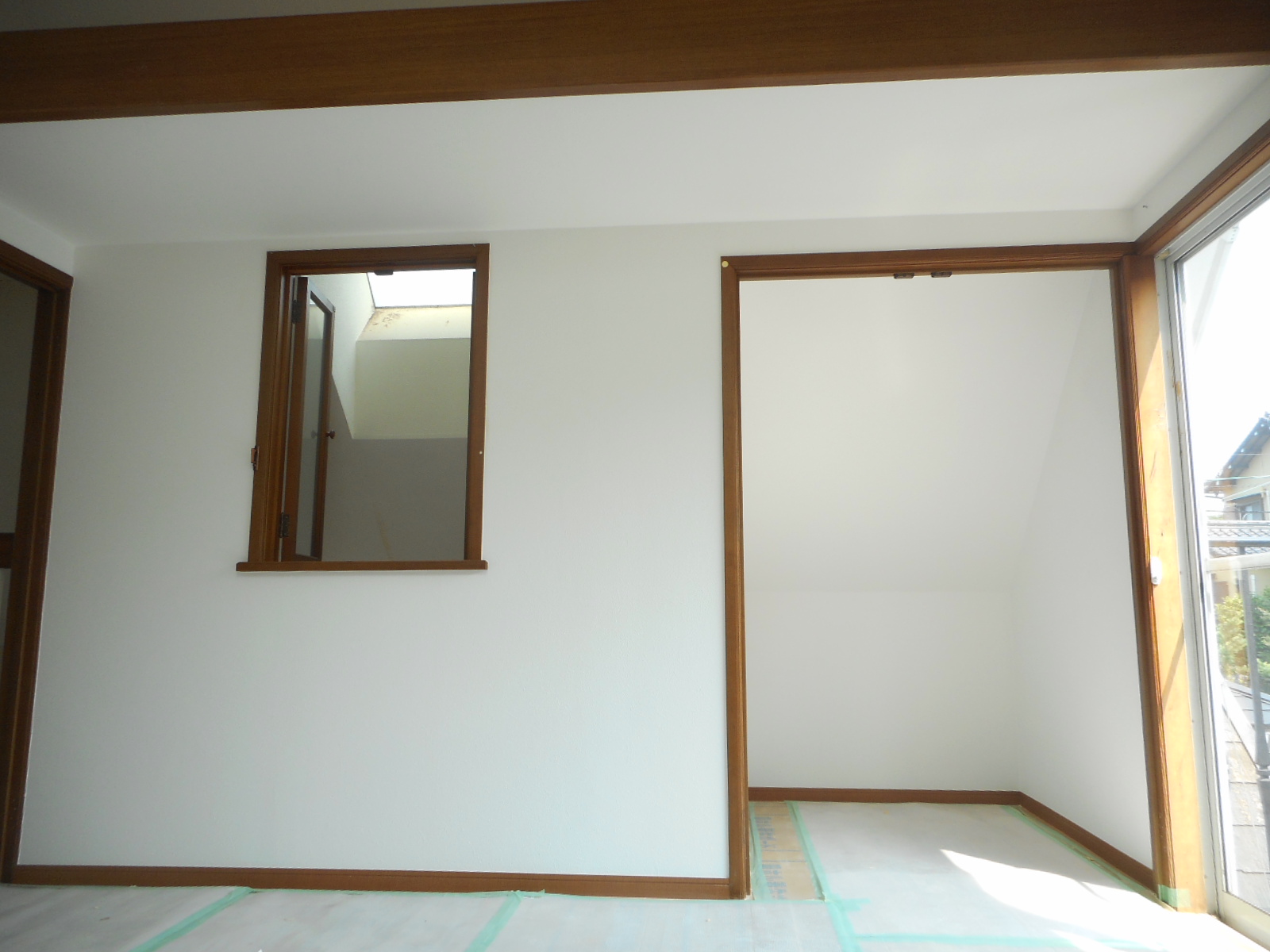 | クロゼット側の、前の状態です!! ⇒ | 天井も含め、クロスの張替えが完了しました!! |