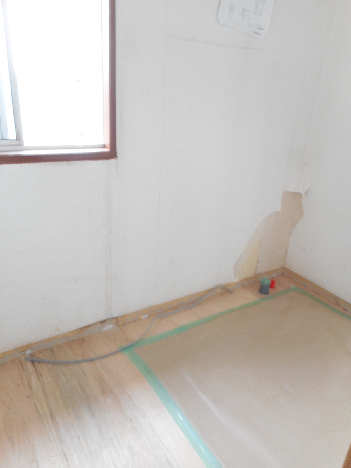 | 工事前の状態です。 ⇒ | クロスを剥ぎ、パテ処理をしました!! |