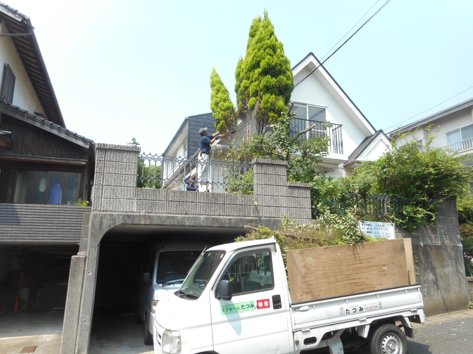 しばらく空き家状態だったと言うこともあり、庭廻りの樹木がかなり伸び、お隣にも