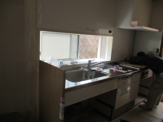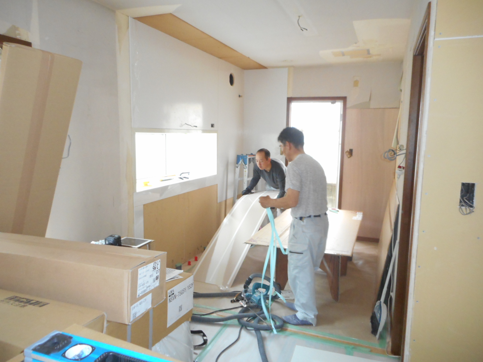 | レンジフードを、組付けています!! | 下の流し台廻りを、組付けて行きます!! |