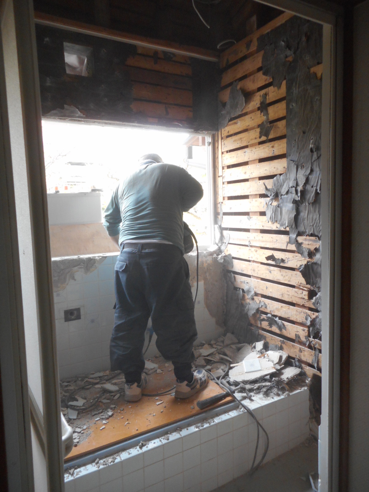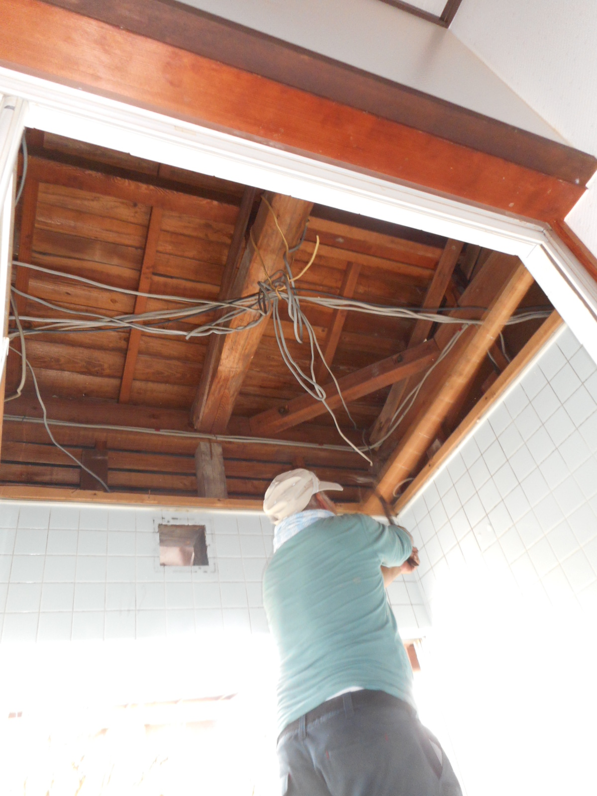 | 天井の解体から始めます!! | 壁廻りの解体をします!! |