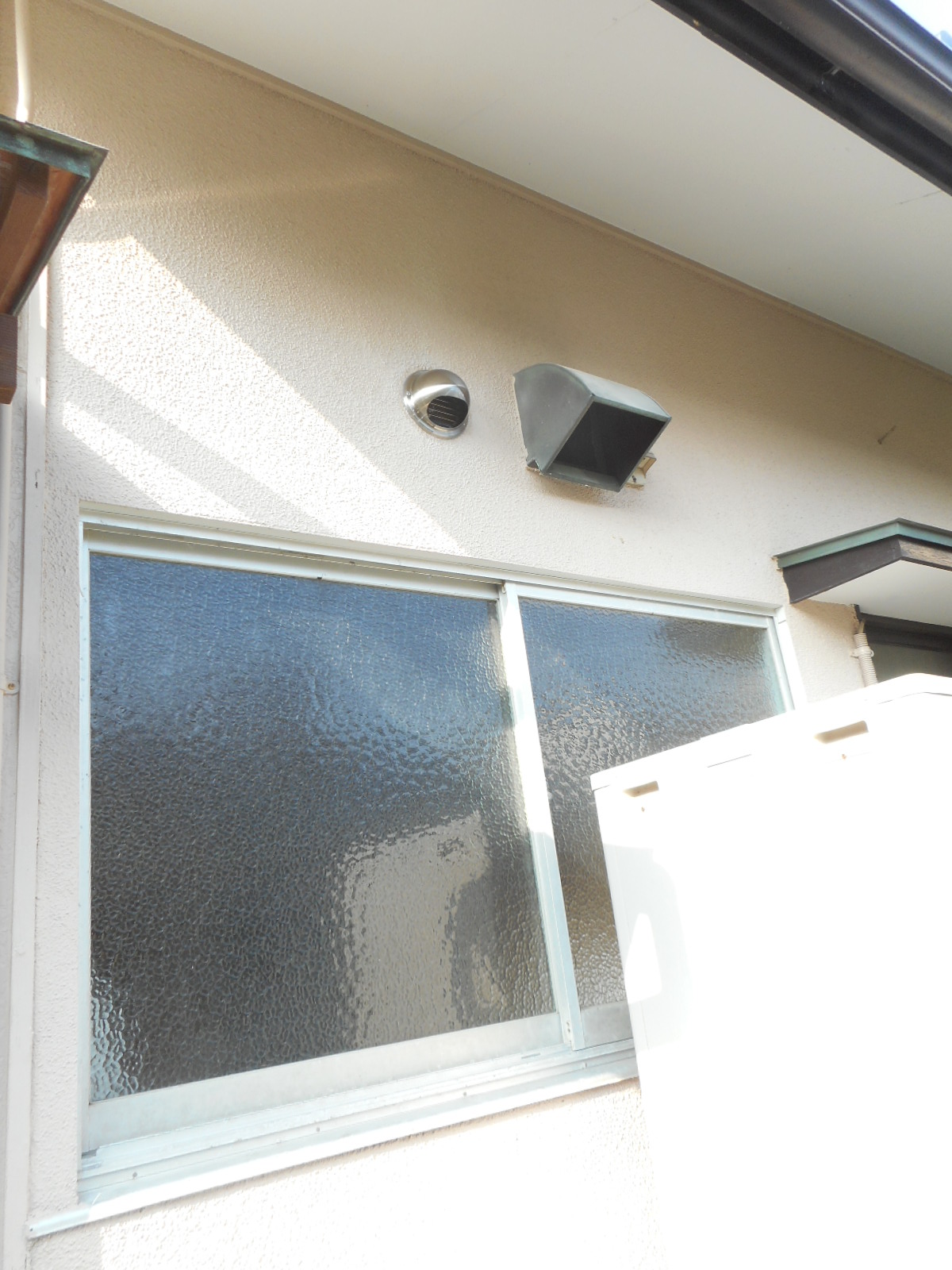 | 外に、新規の換気フードを取付けました!! | 中には、外の換気フードと繋いだダクトを取付けました!! |