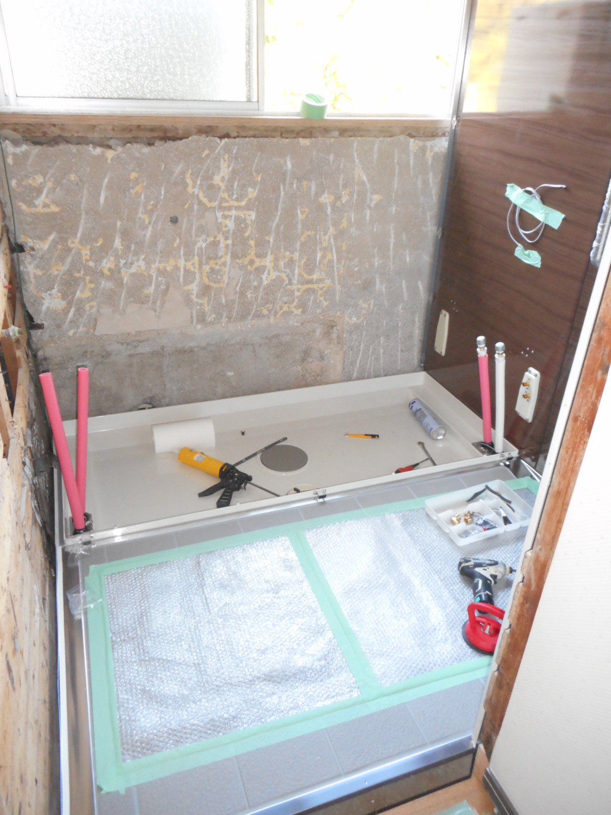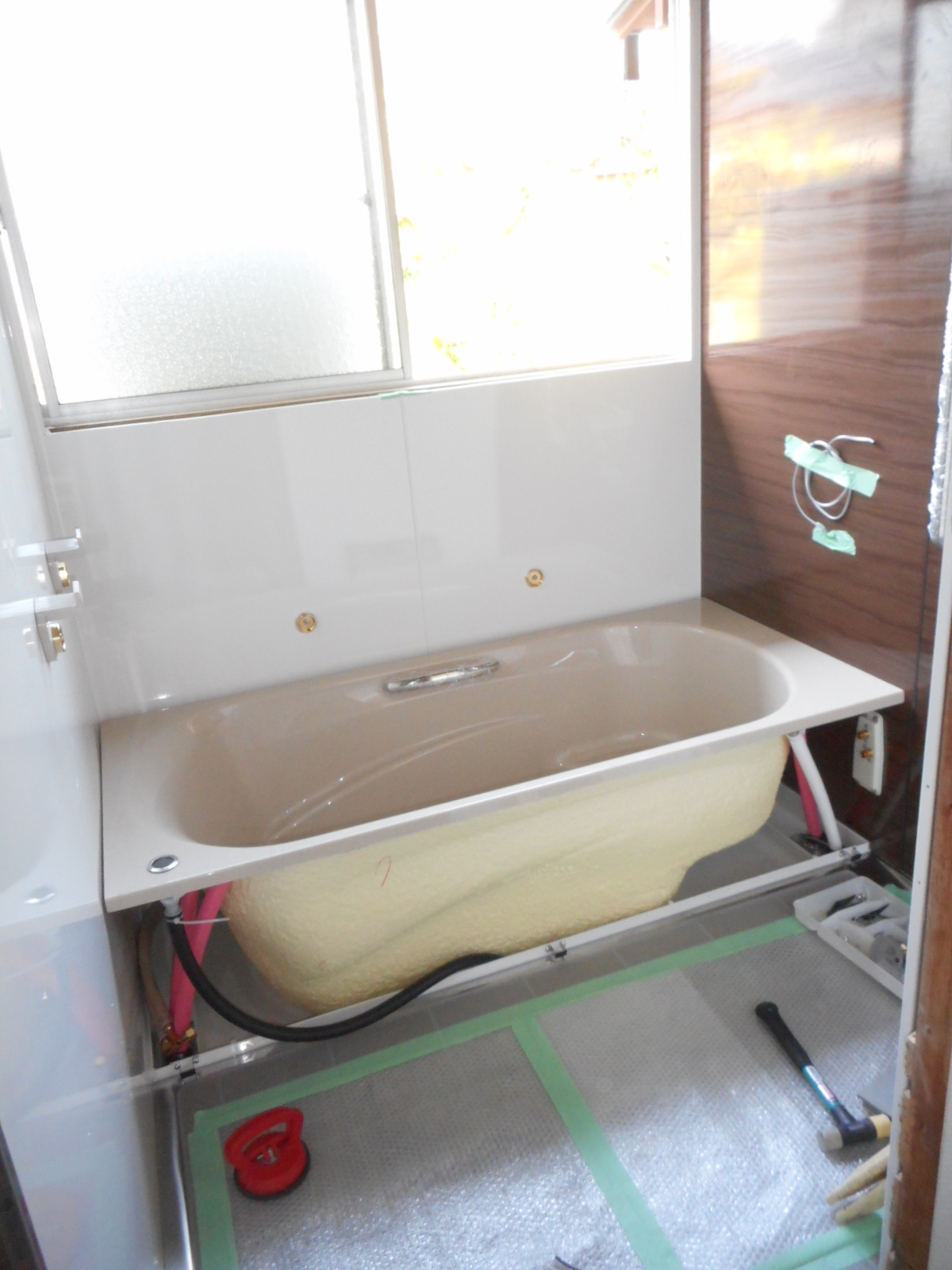 後は設備屋さんが、浴槽の接続等を行えば、全ての作業が完了します。