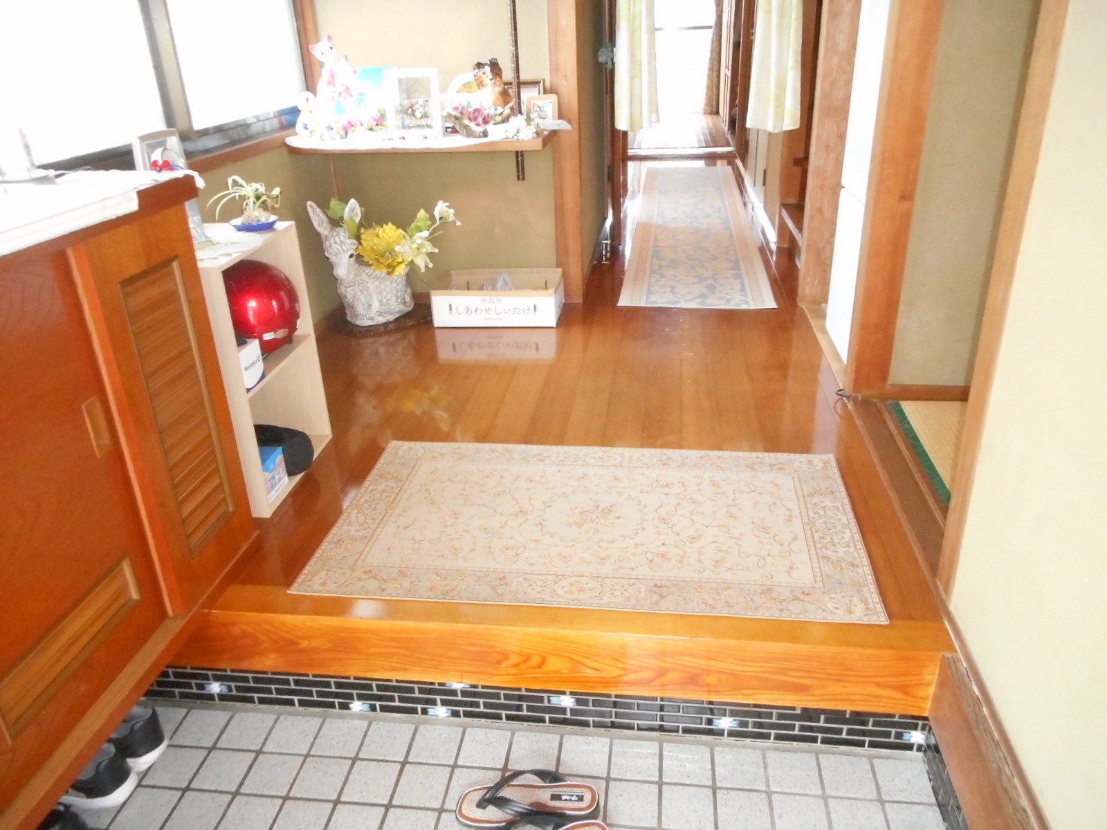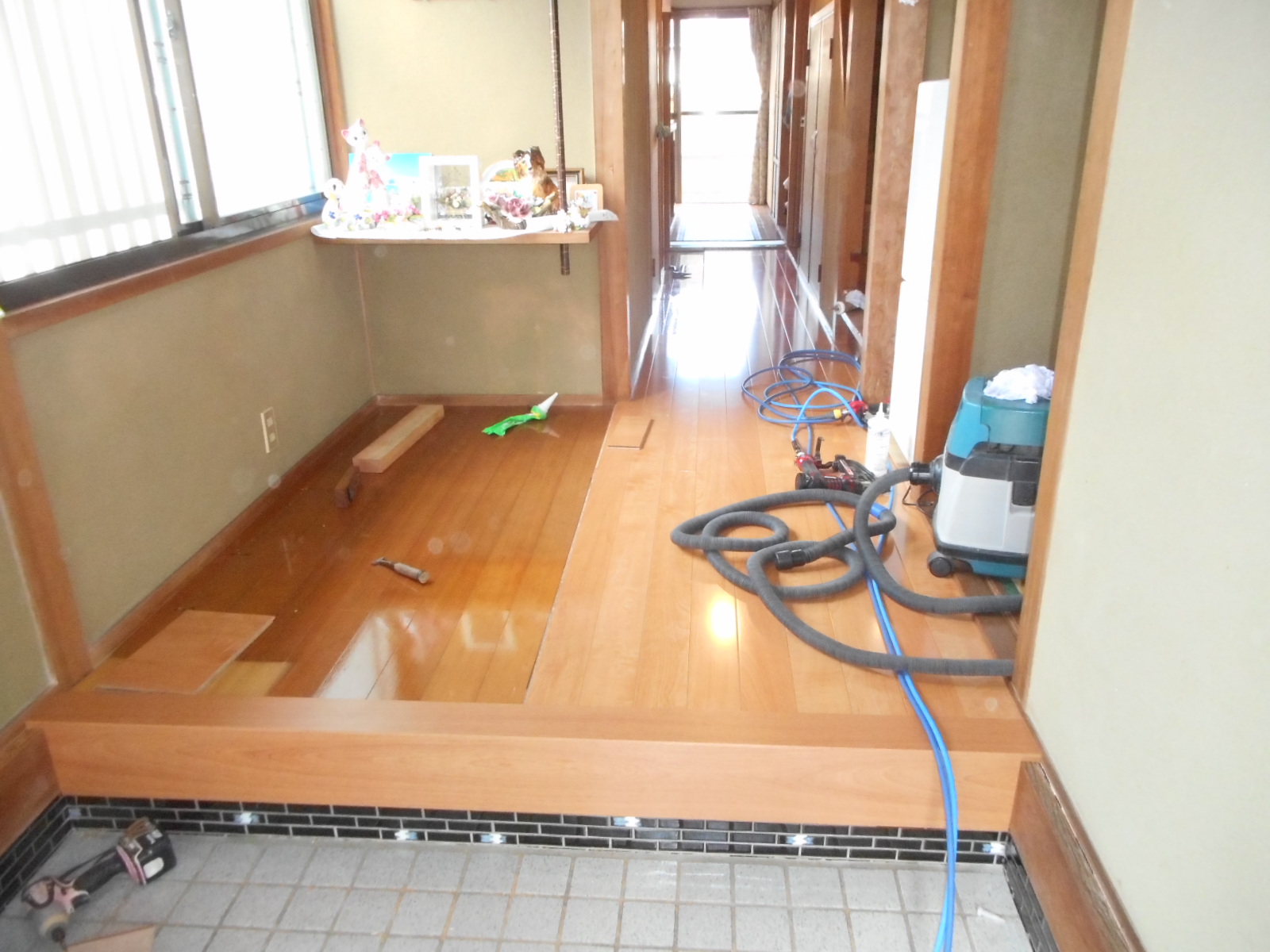 こちらの床もブカブカすると言うことで、玄関の上がり口に新規リフォーム框を施工し、