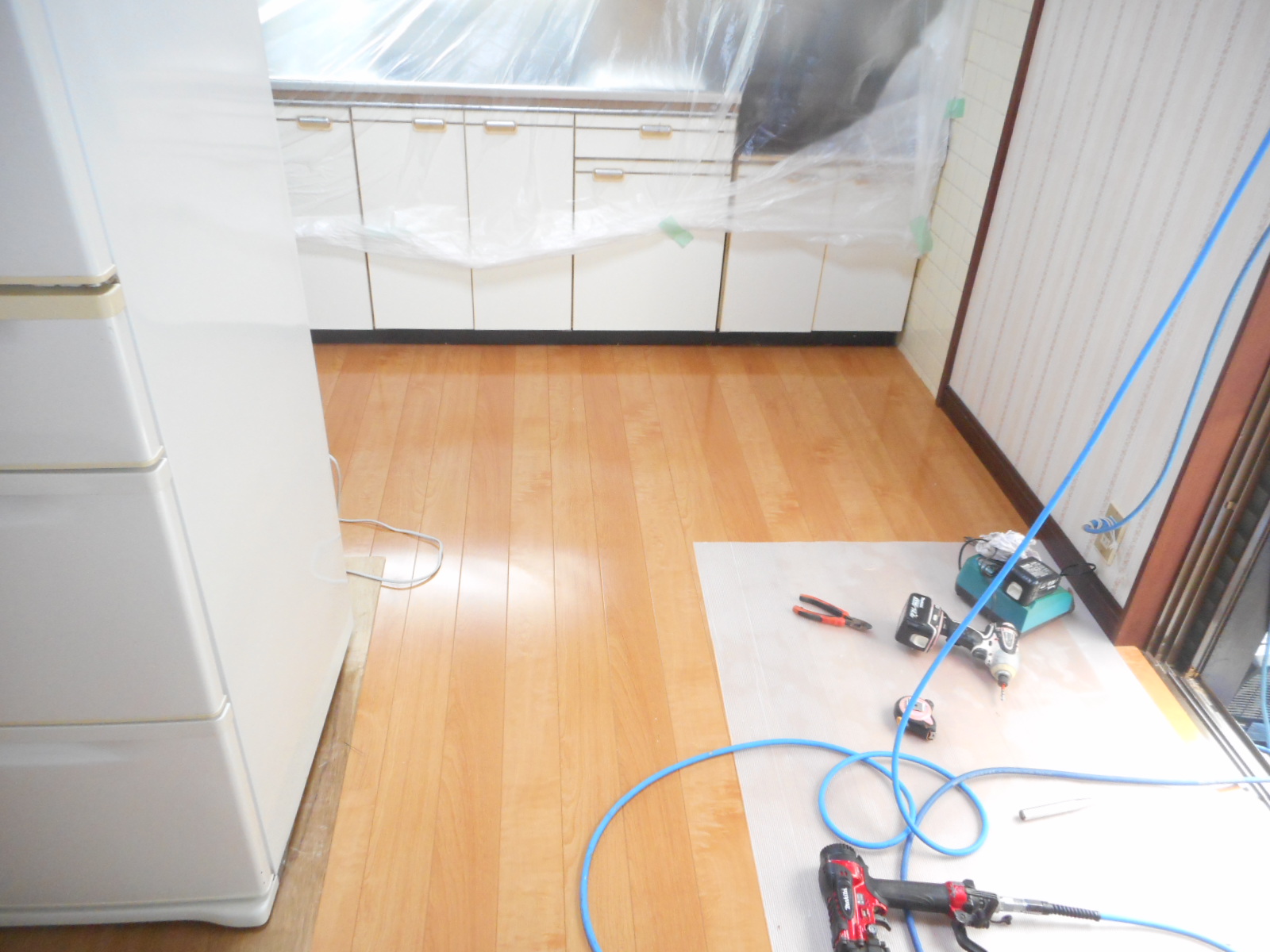既存上部より、新規フロア材を施工します!!