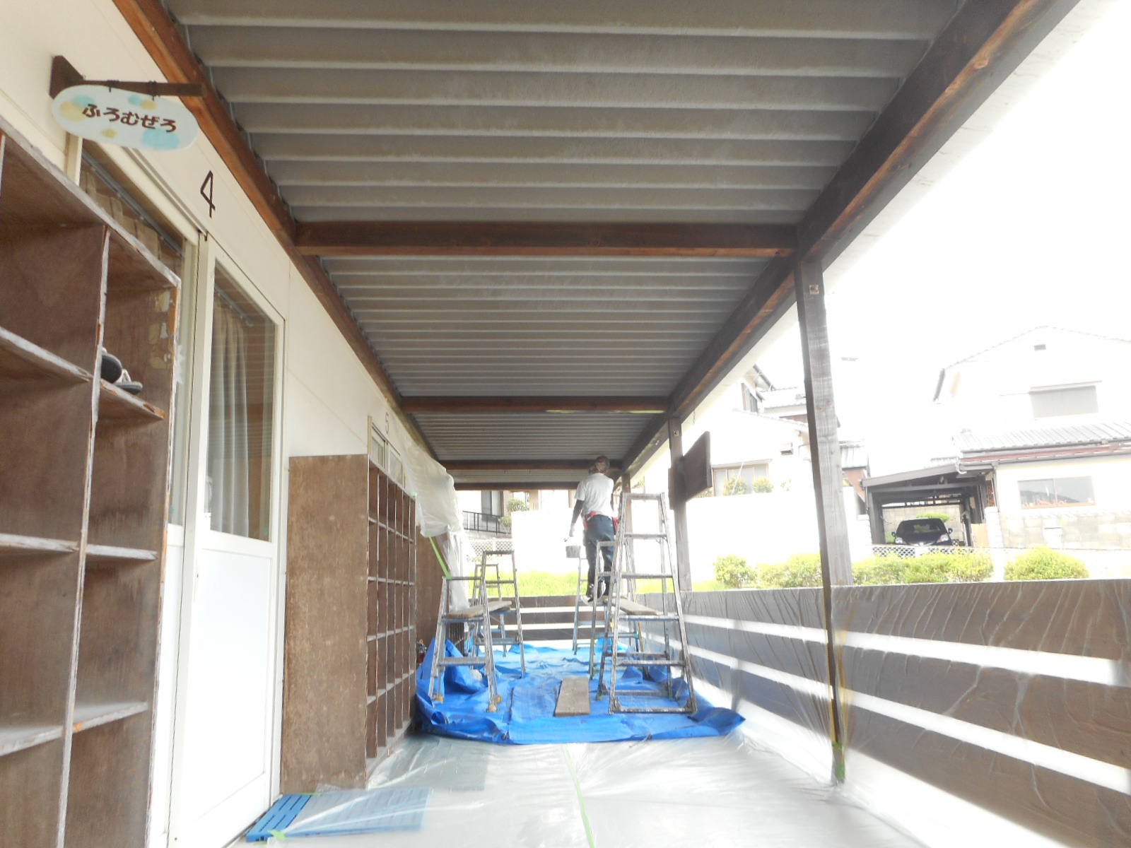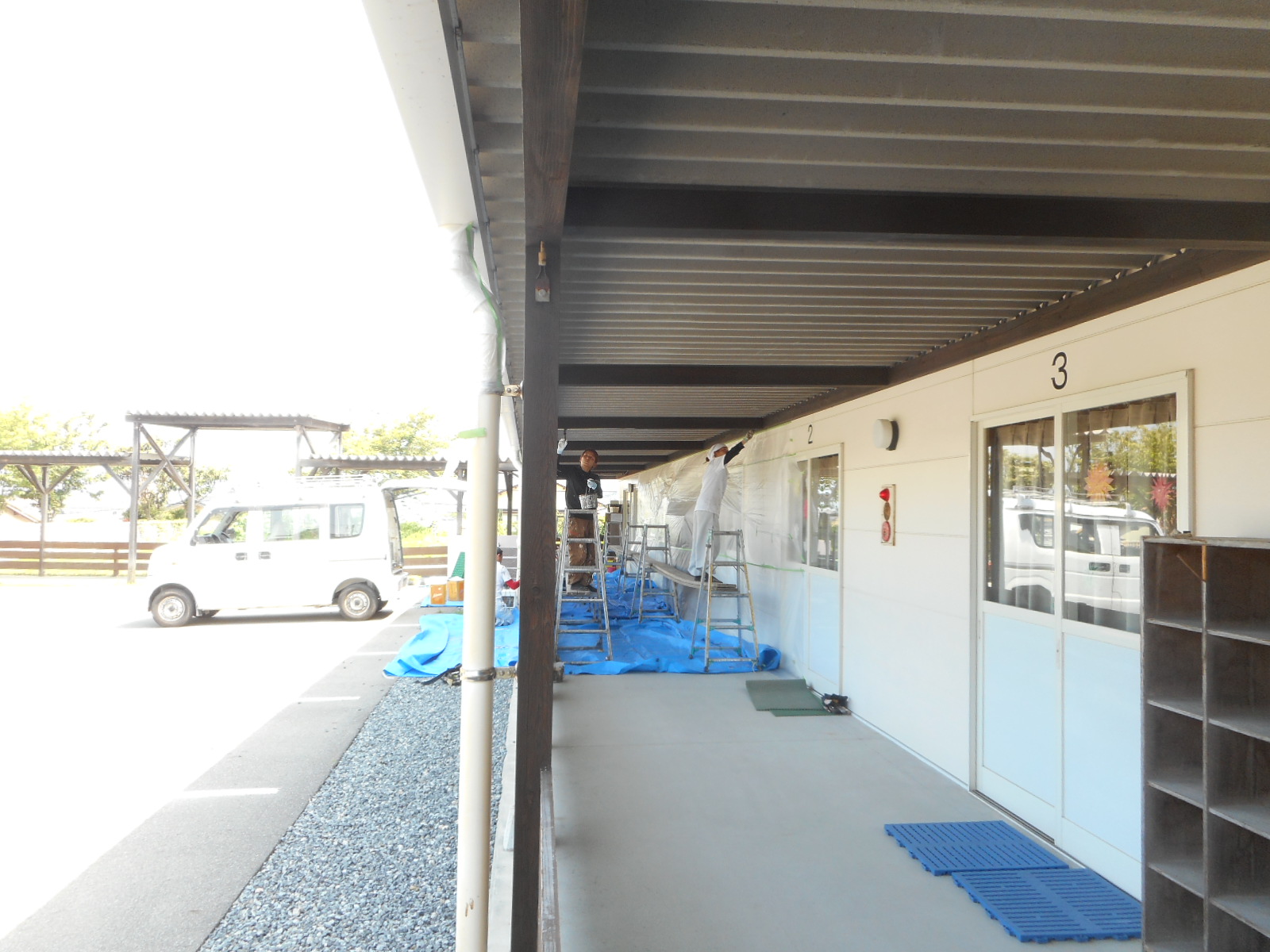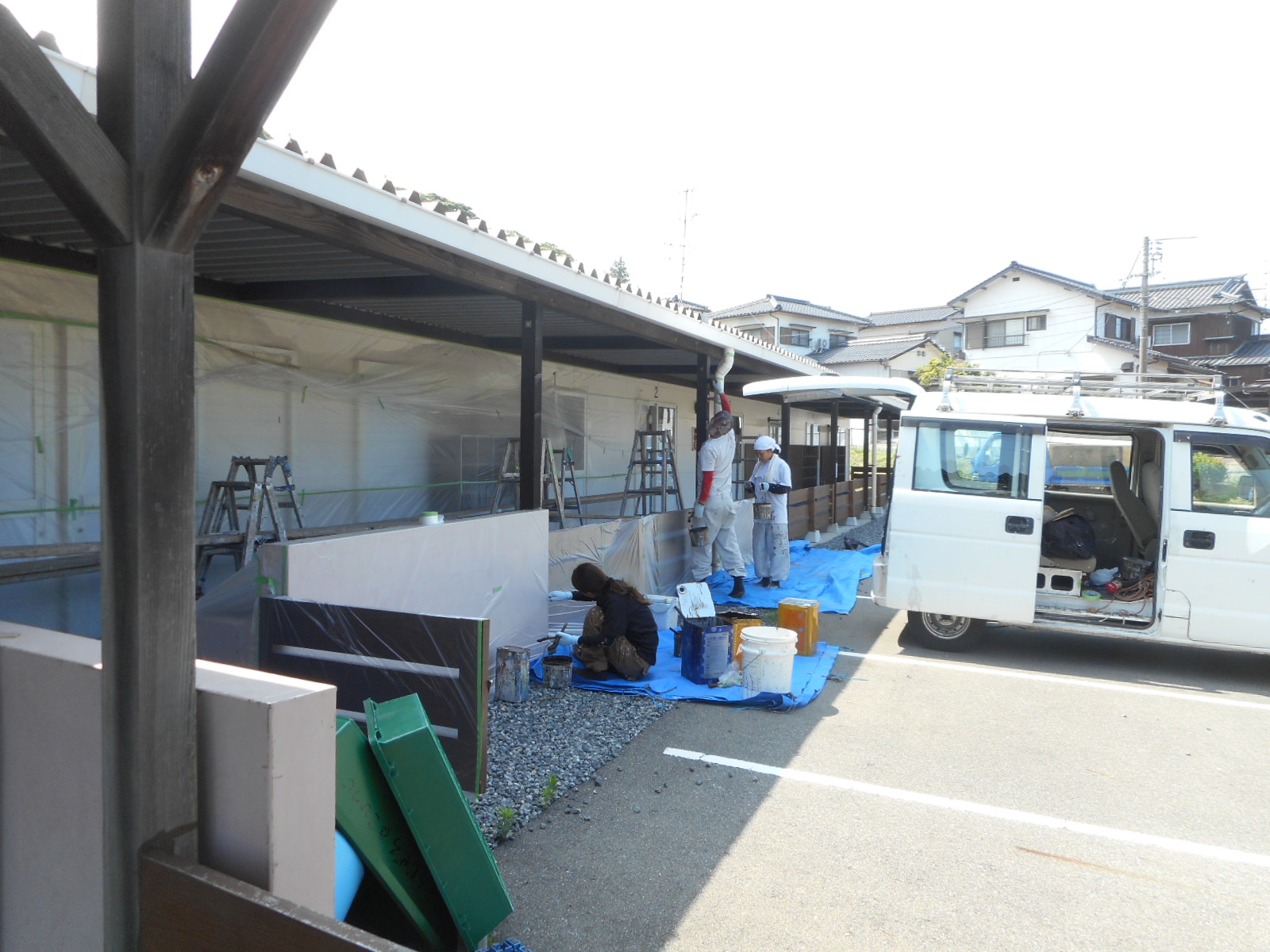 | 他の箇所も、塗装前に養生をします!! | 養生後、順次塗装をして行きます!! |