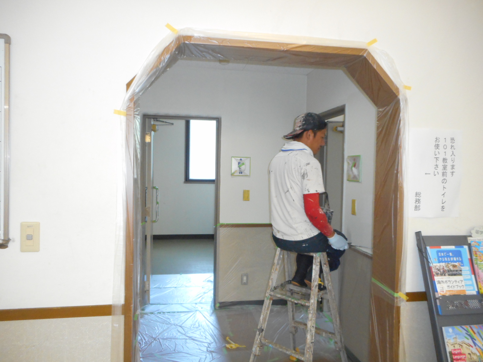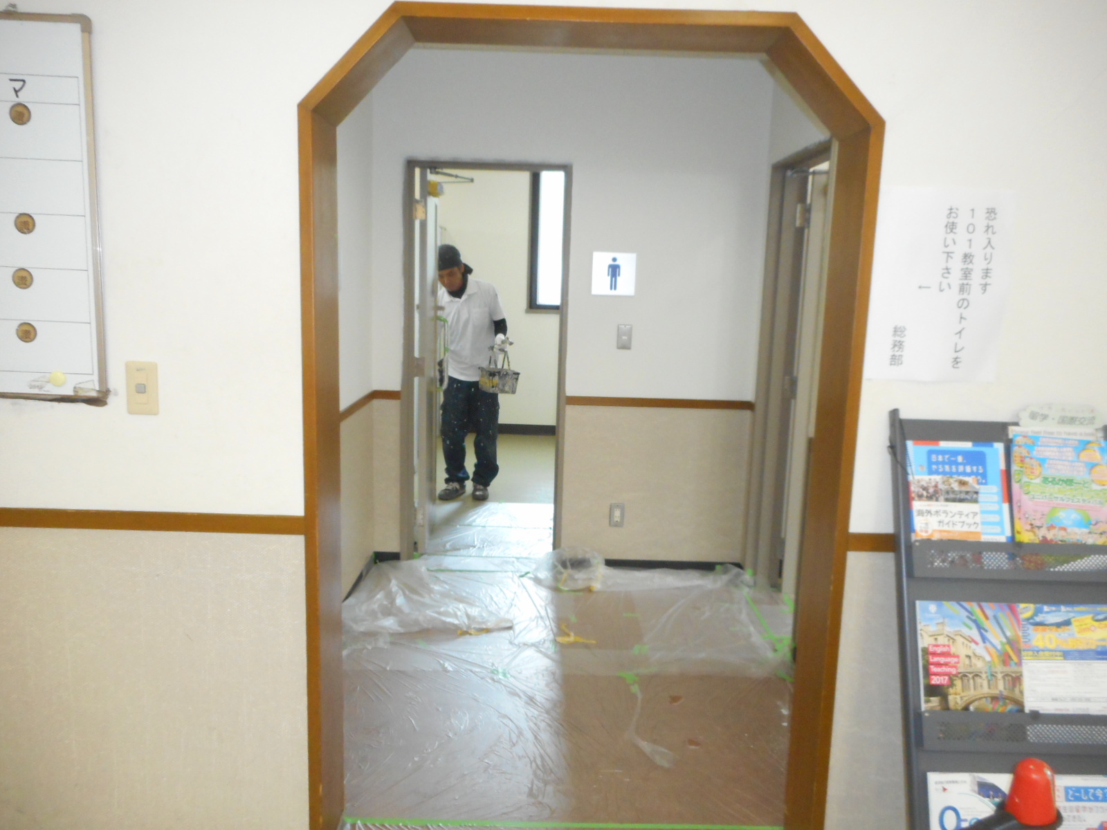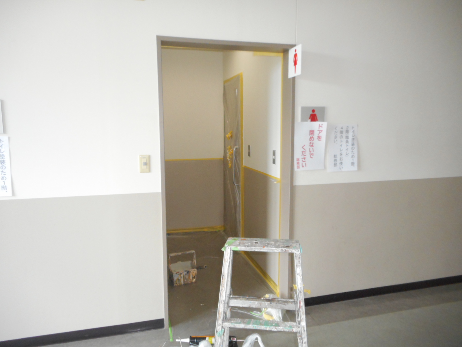 市内で、幼稚園から大学までをを運営する某学校法人からの依頼で大学内のトイレ廻りの塗装と