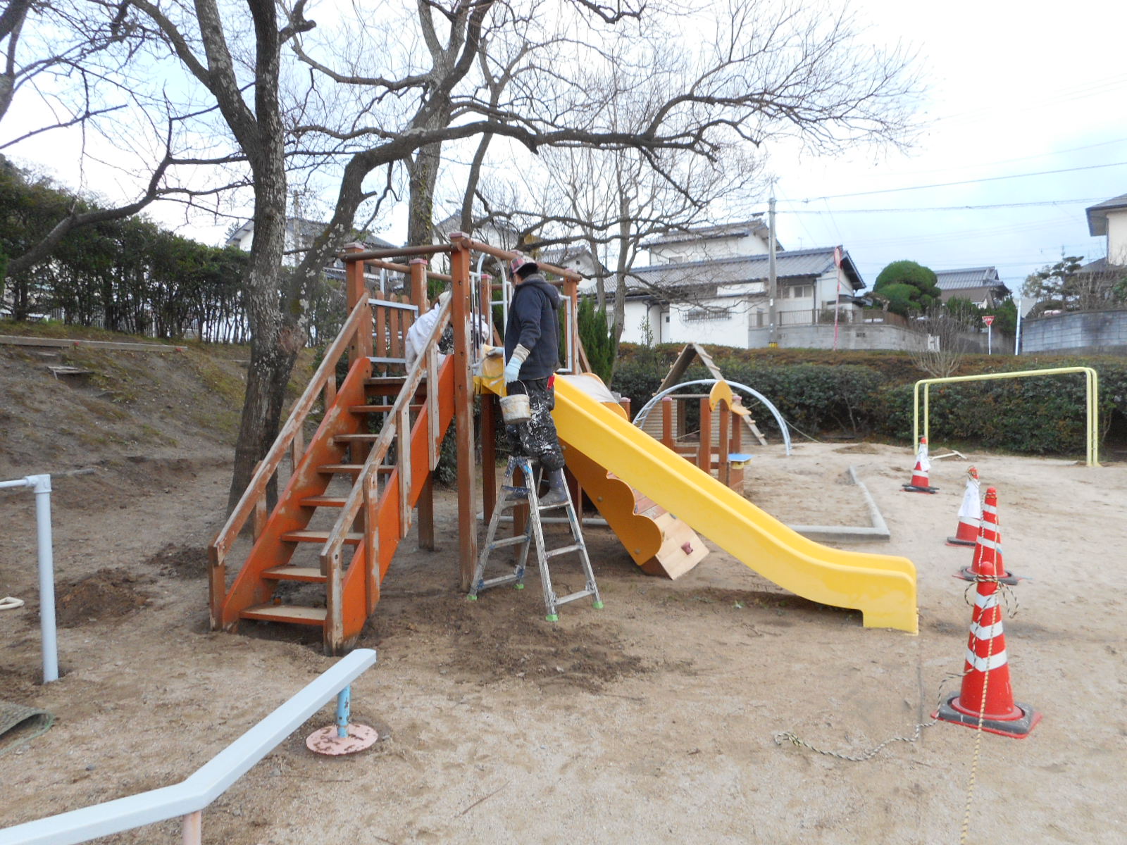 | 幼稚園の外観!! | こちらでは、1月にも遊具の塗装をしました!! |