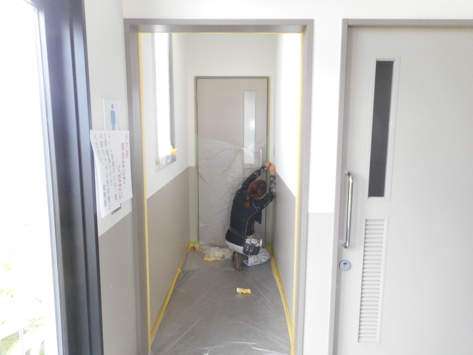 ◎大学のトイレのドア廻りと壁廻りの塗装工事。