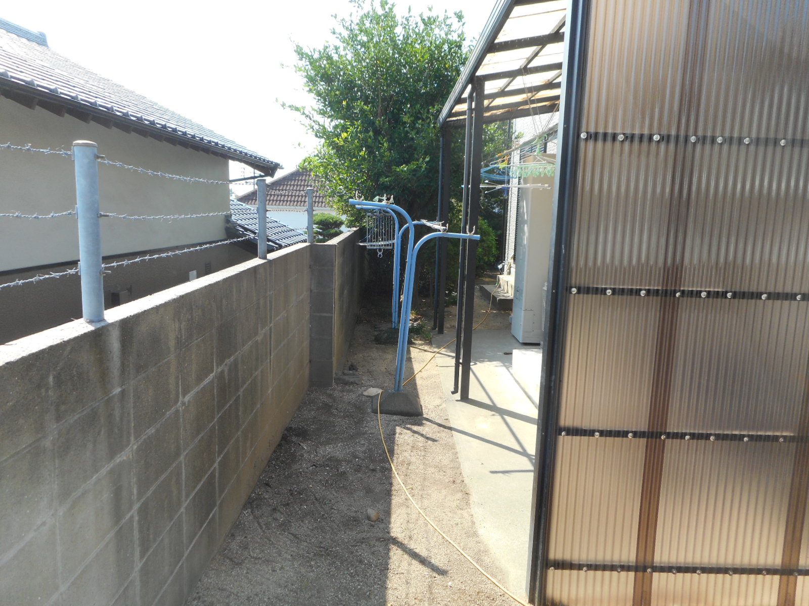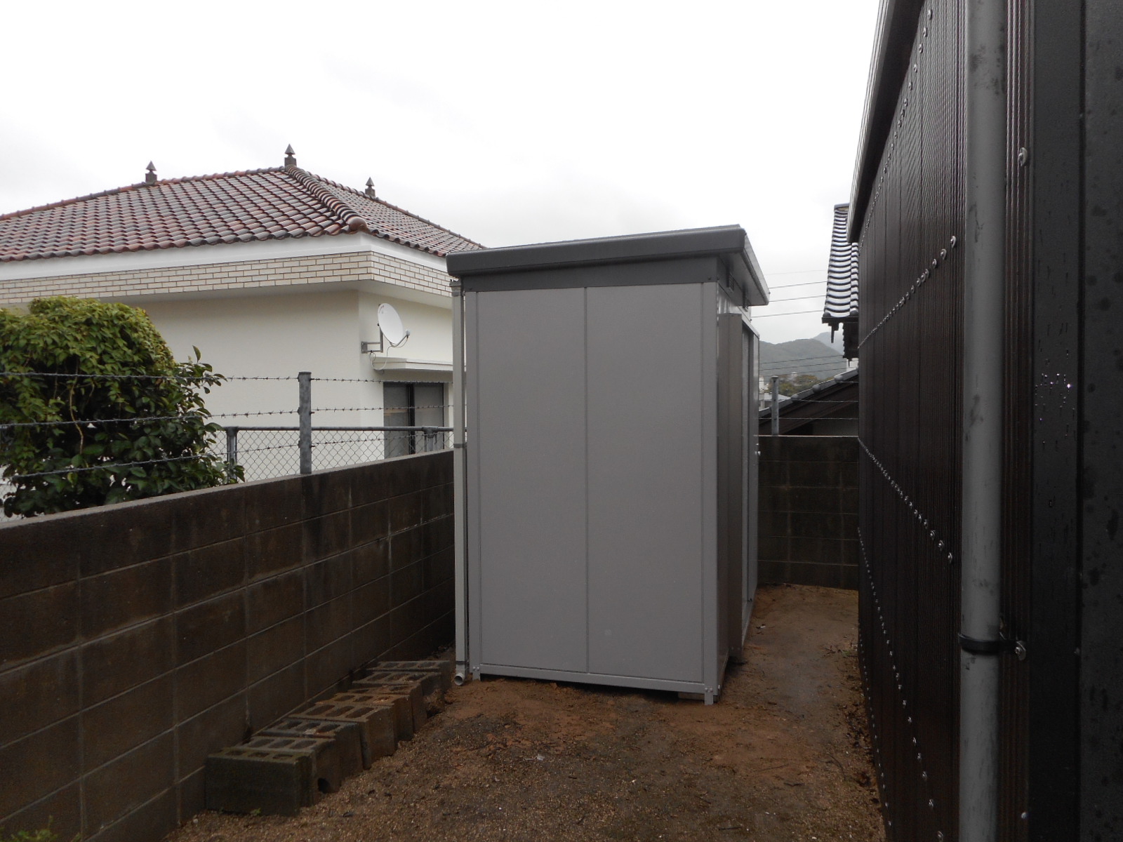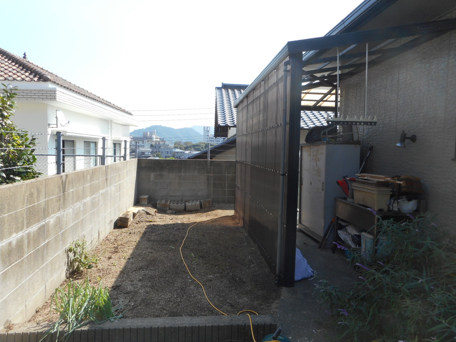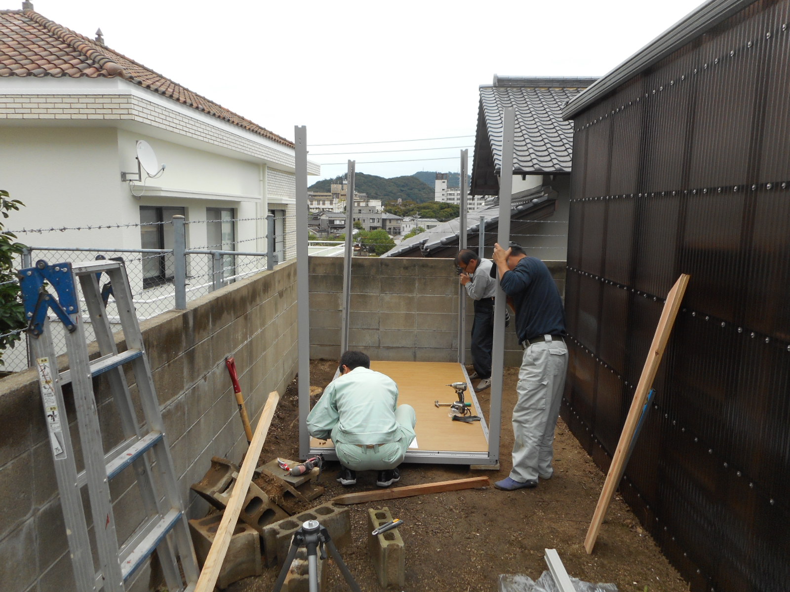 4年前に浴室の改修工事をやらせて頂いた山の田西町の方から、この度テラスの波板の張替え、物置の交換、不要な木の伐採の依頼がありました。