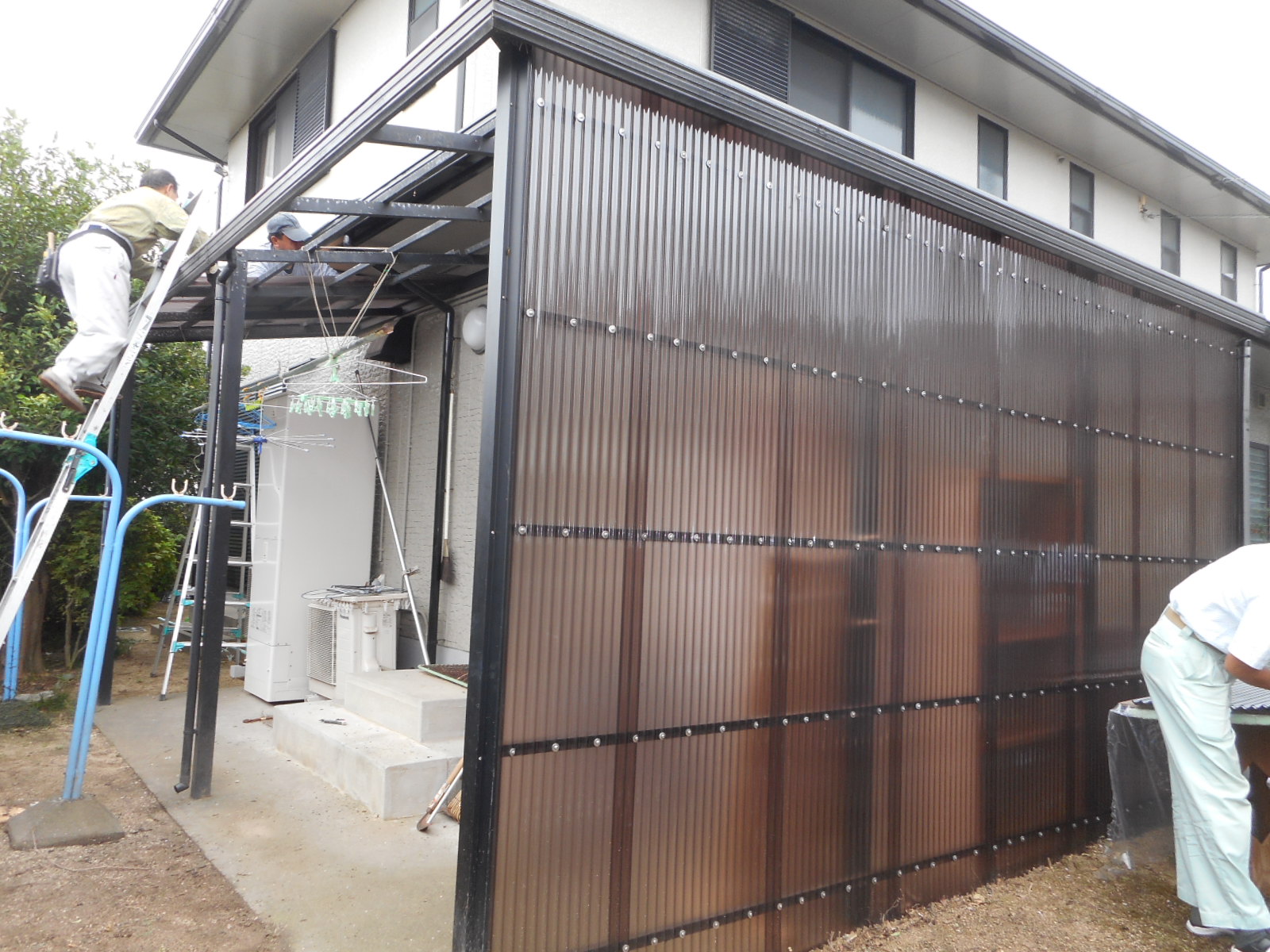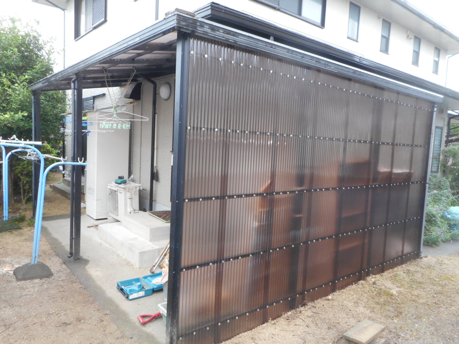 物置とテラスの波板の解体撤去と、テラスの波板の一部を新規に張りました。