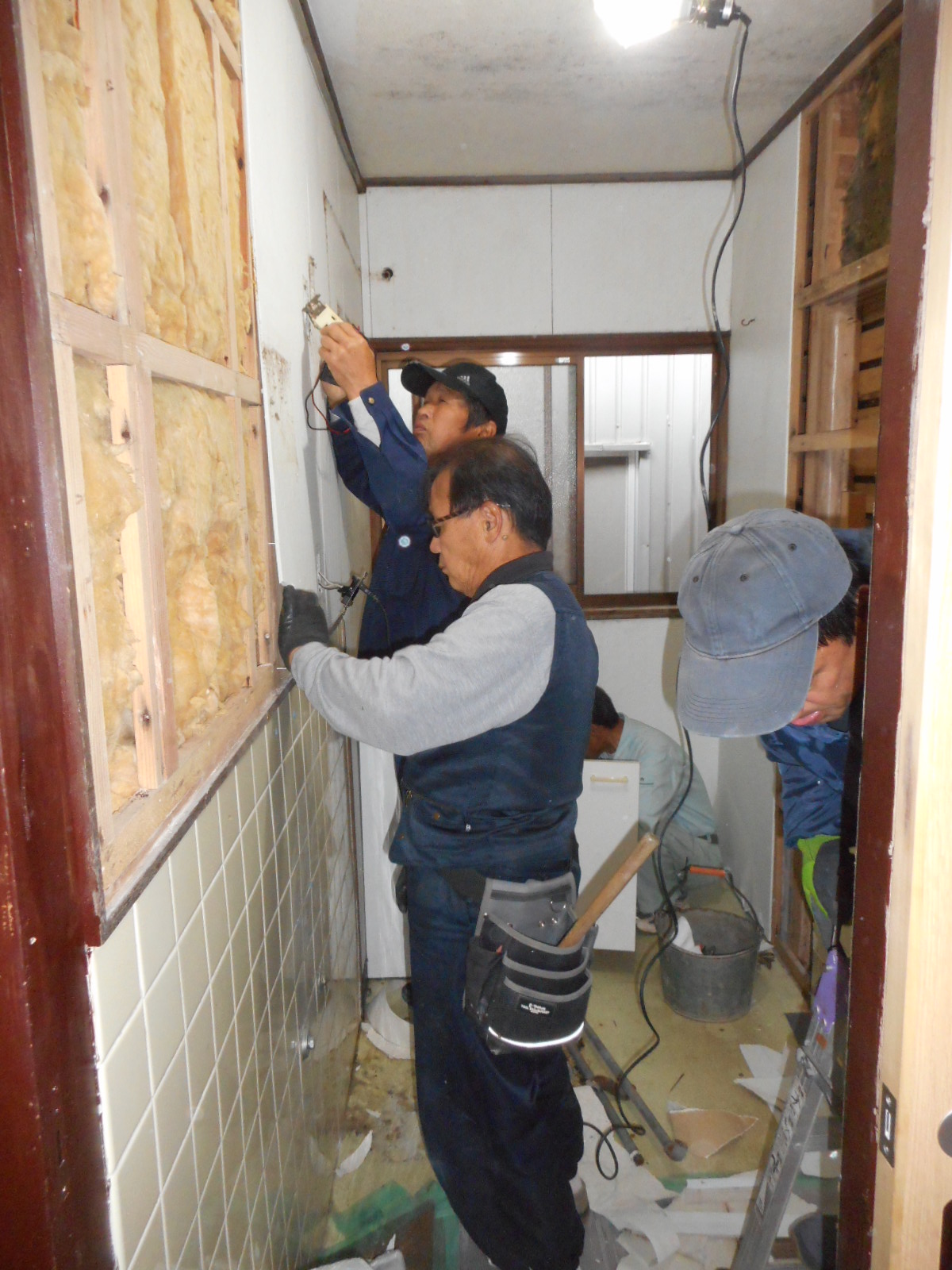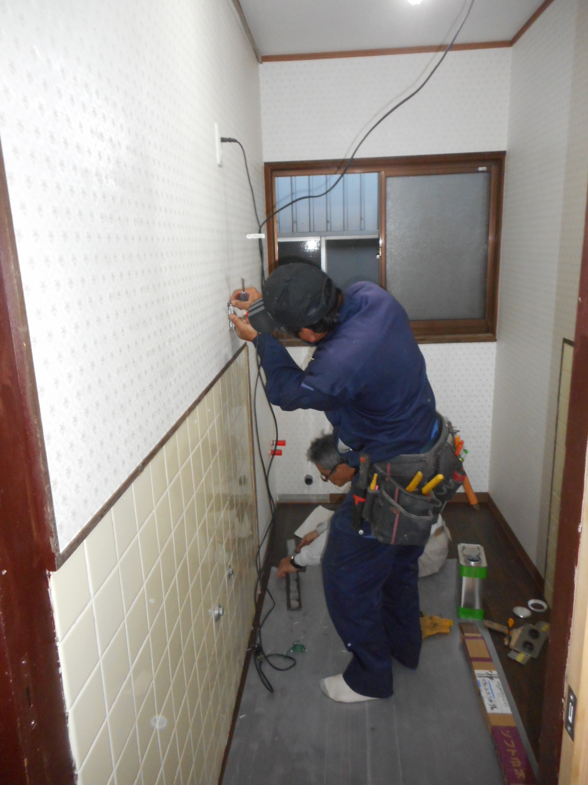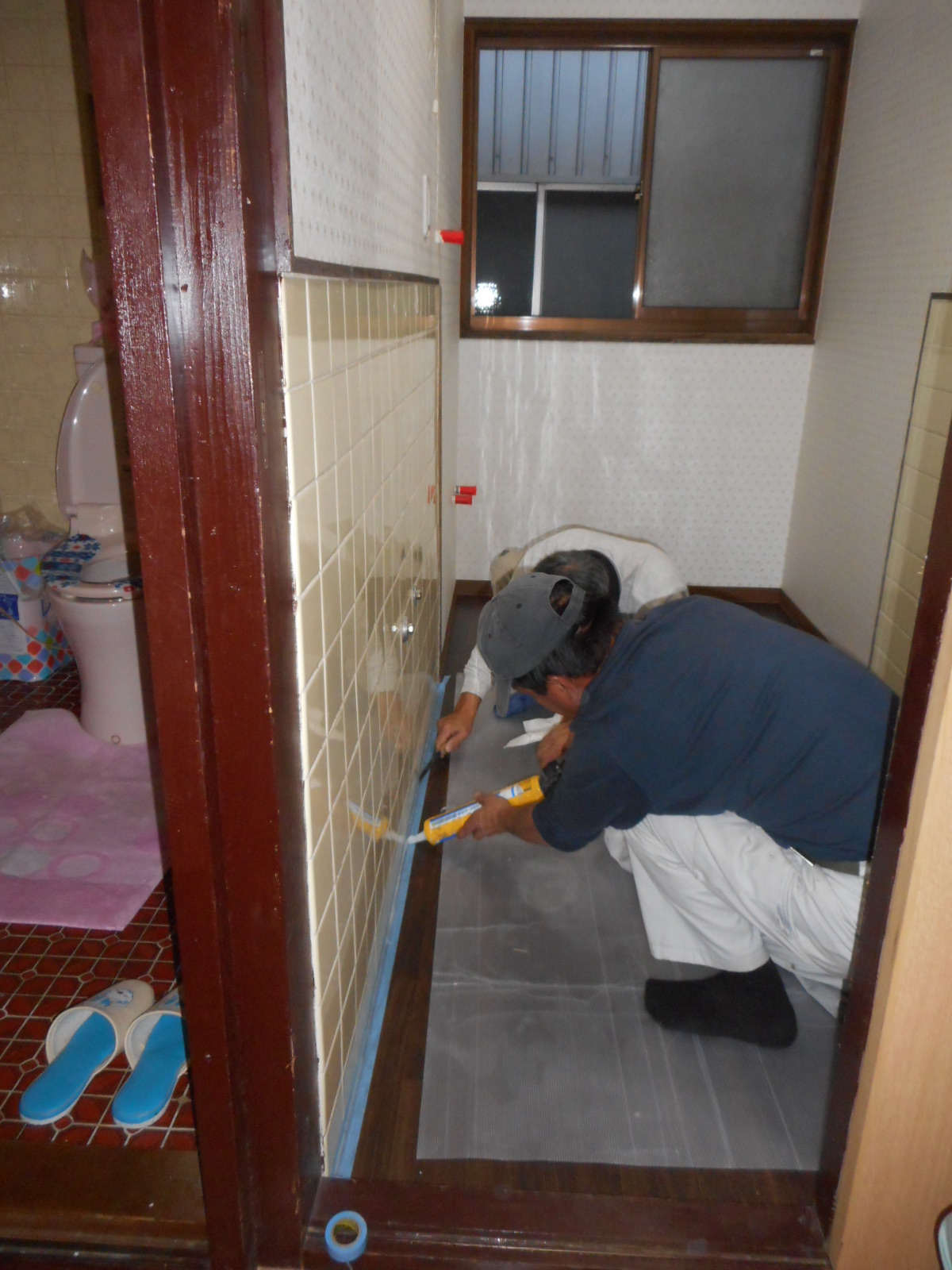 前回のブログで浴室の改修工事を紹介した施主から、追加工事として浴室の入り口の洗面所の改修工事も行うことになりました。