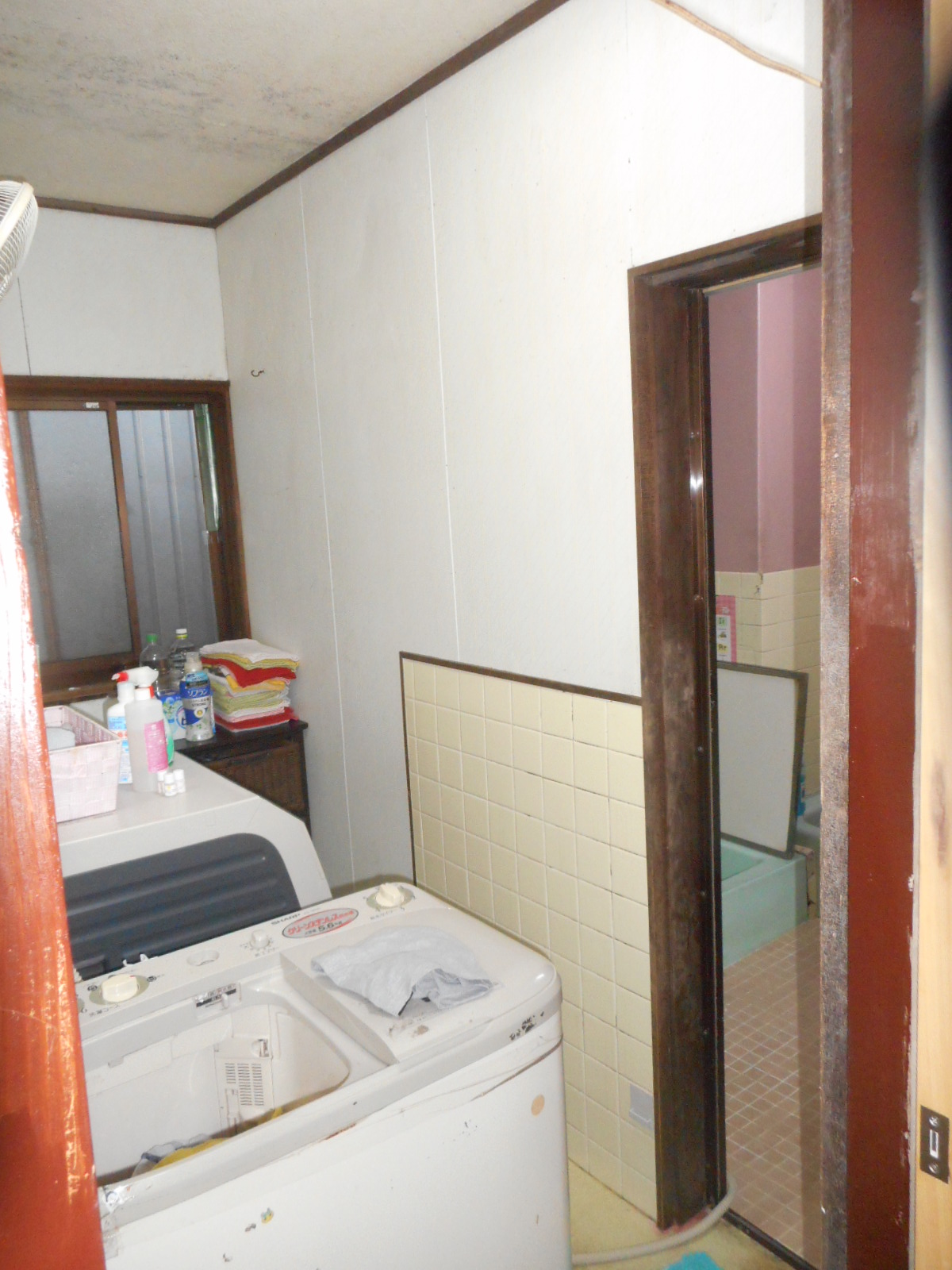 | *洗面所の現状!! | 浴室方向を見る!! |