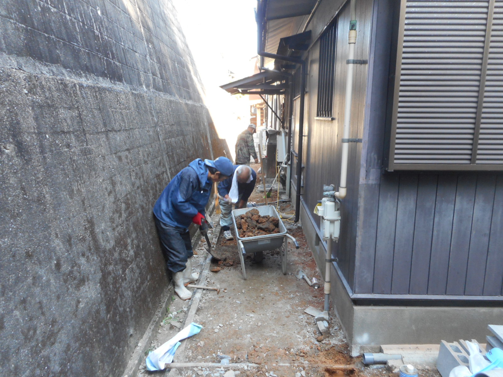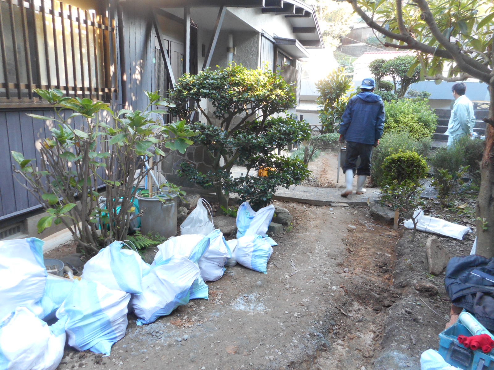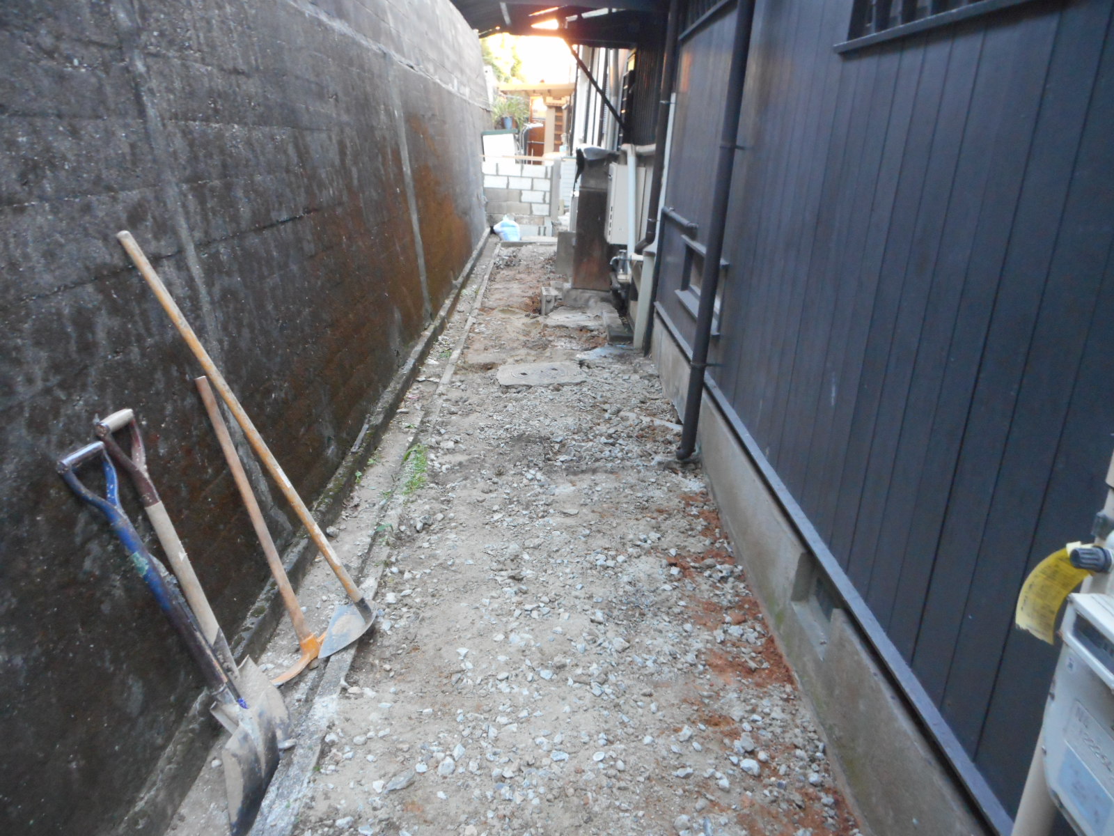 コンクリート部分を、すべて撤去しました!! 土砂もスキ取り、下地整備をします!!