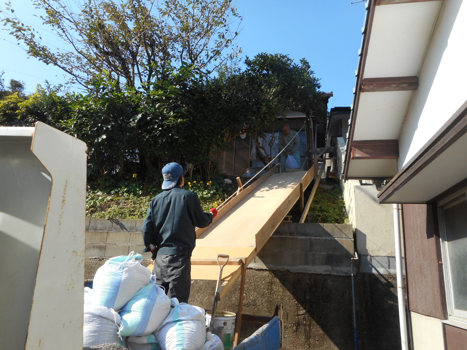 ◎北側のコンクリート部分の、打ち直し作業から紹介します。