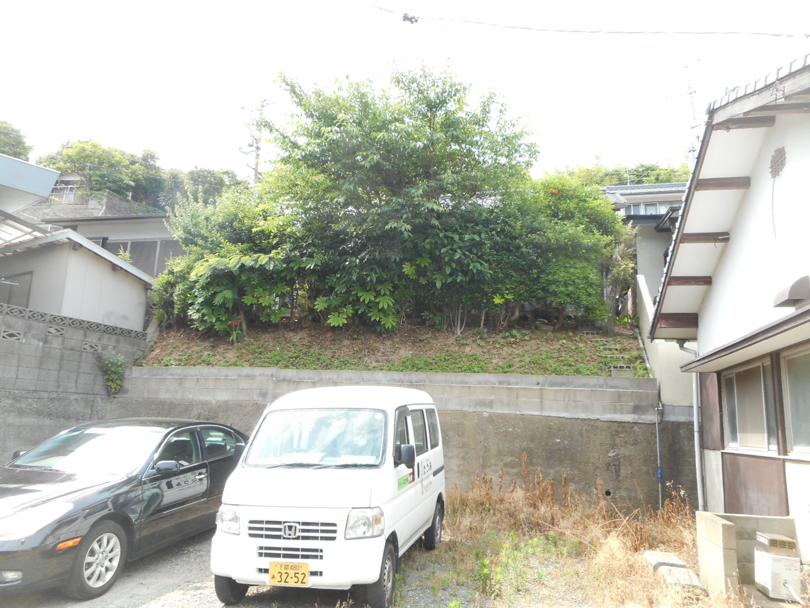 玄関側を見る!! 駐車場の土手の上が、現場のお宅です!!