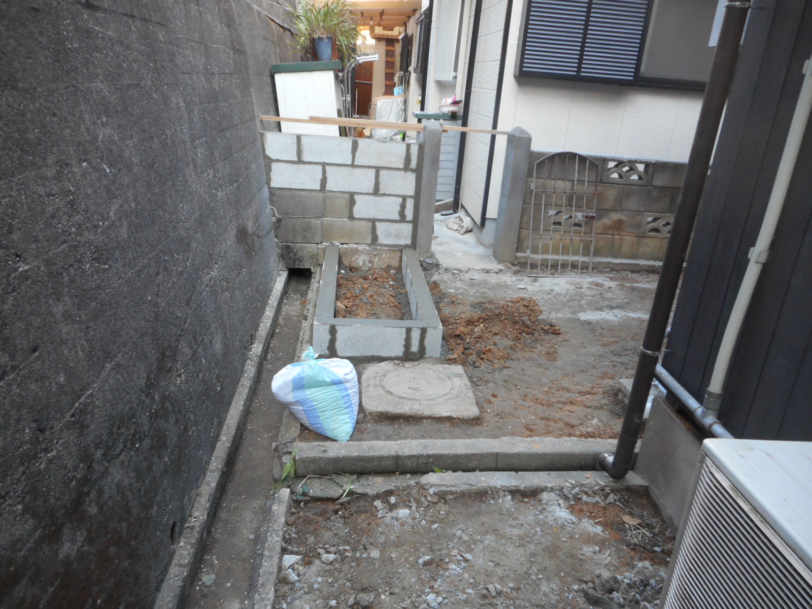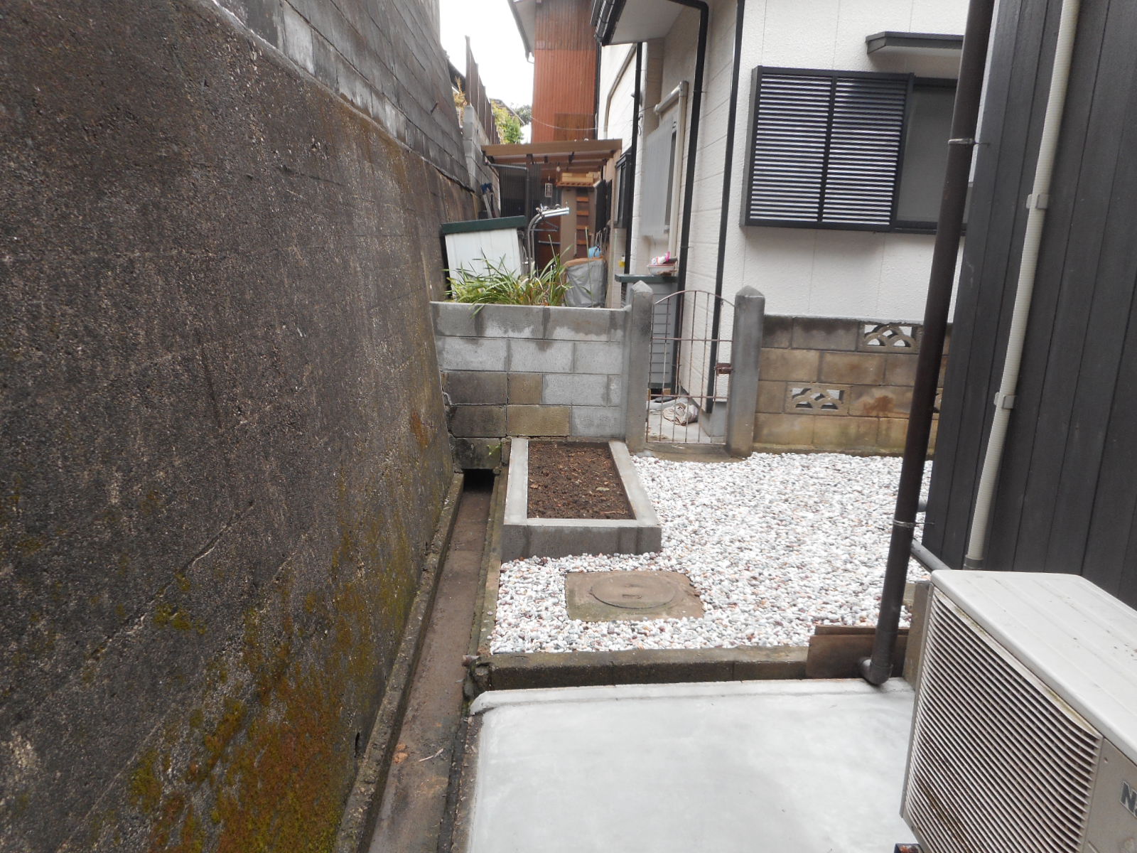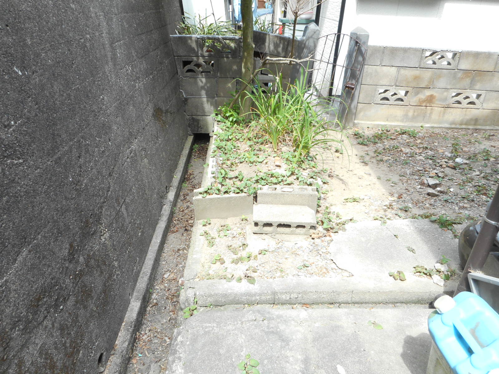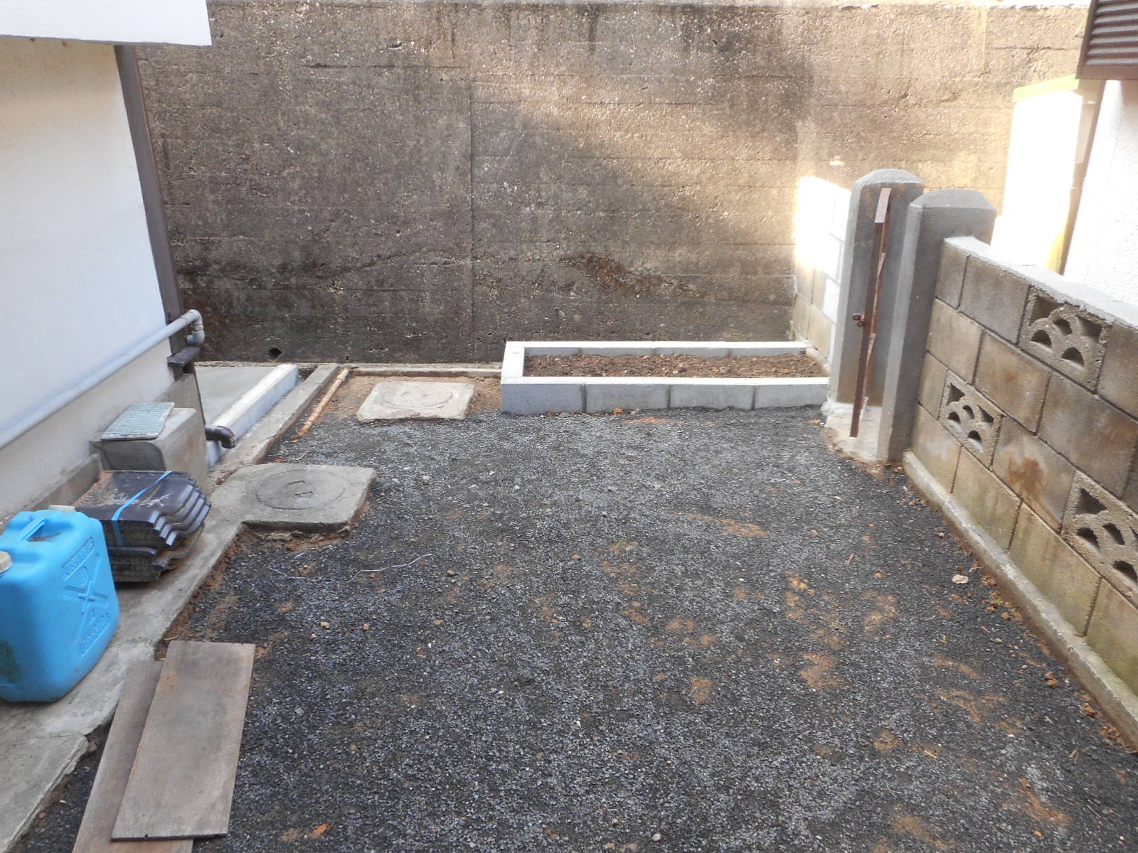 | 花壇を造り直し、お隣との境界ブロック塀も補修しました!! | 不要な物を処理し、下地整備まで完了しました!! |