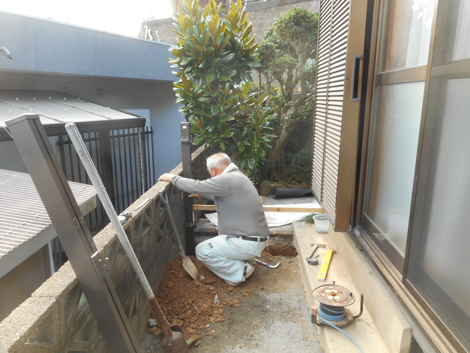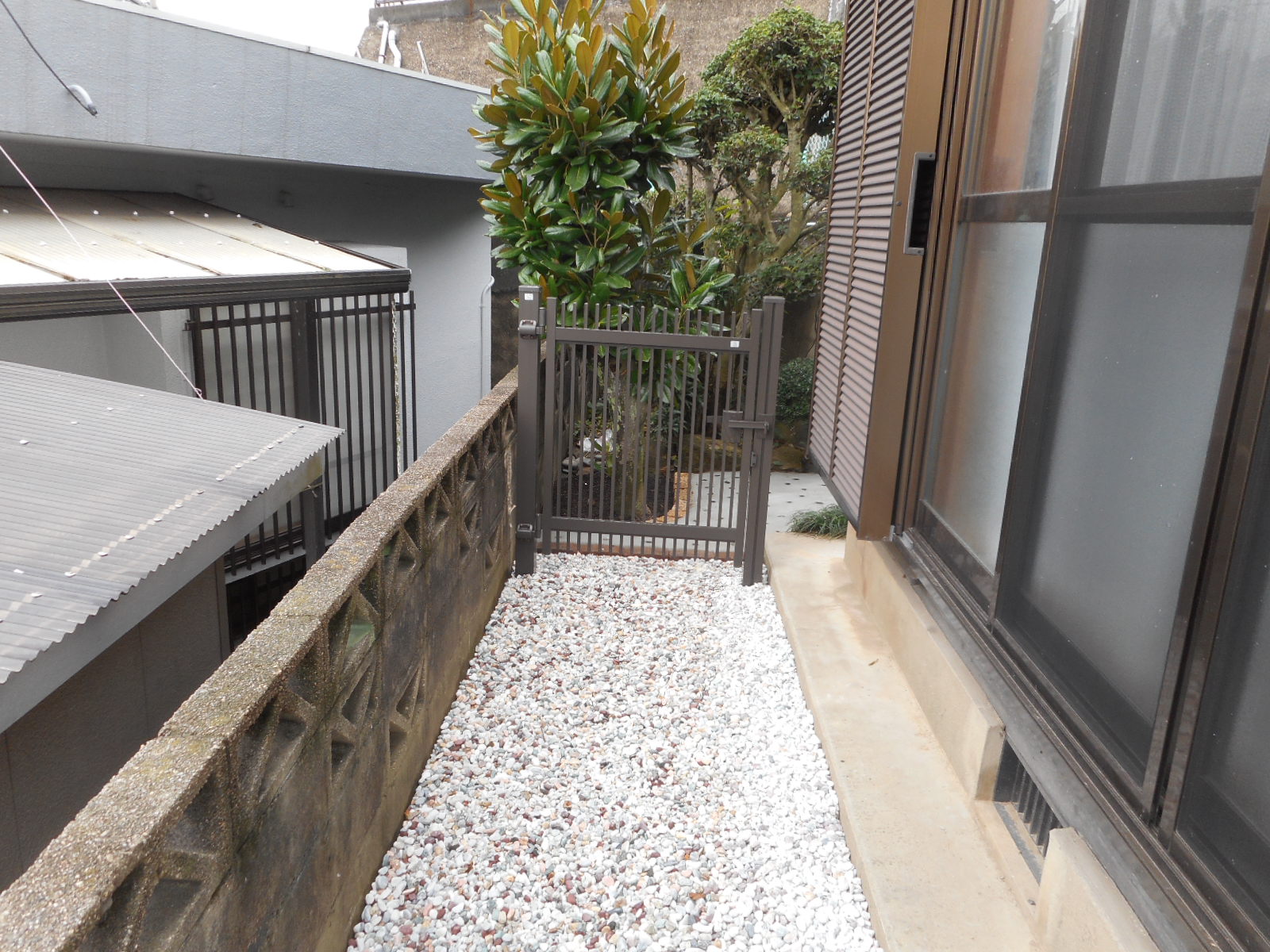 ・玄関側から南の庭の入り口部分に門扉の取付け