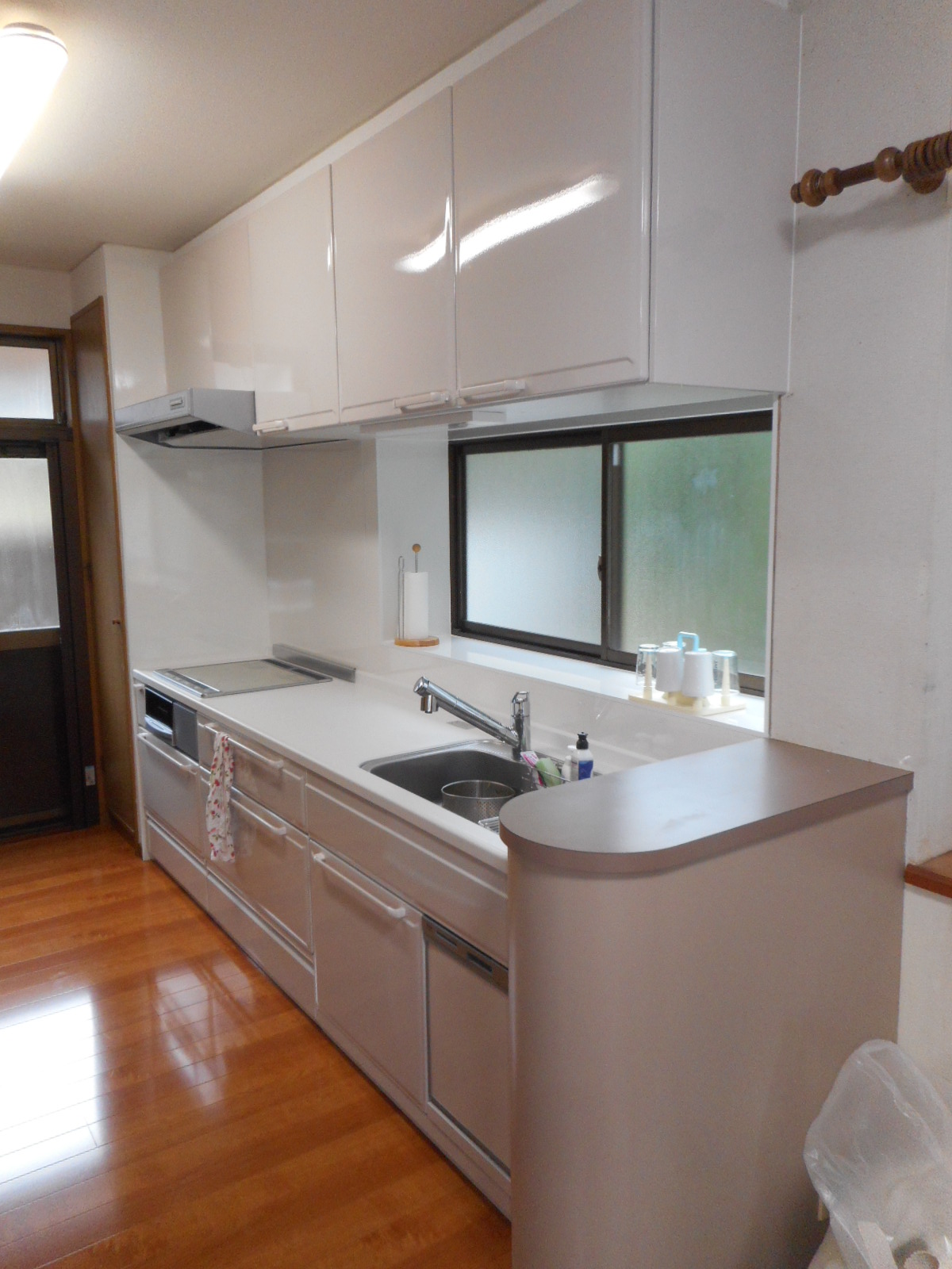古くなったシステムキッチンを入替え、加熱機器もガスコンロからIHヒーターに切替えオール電化にし、